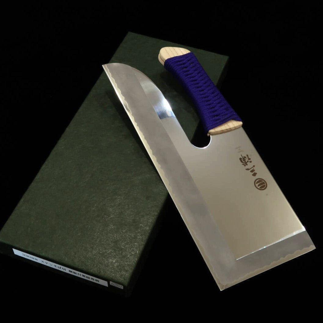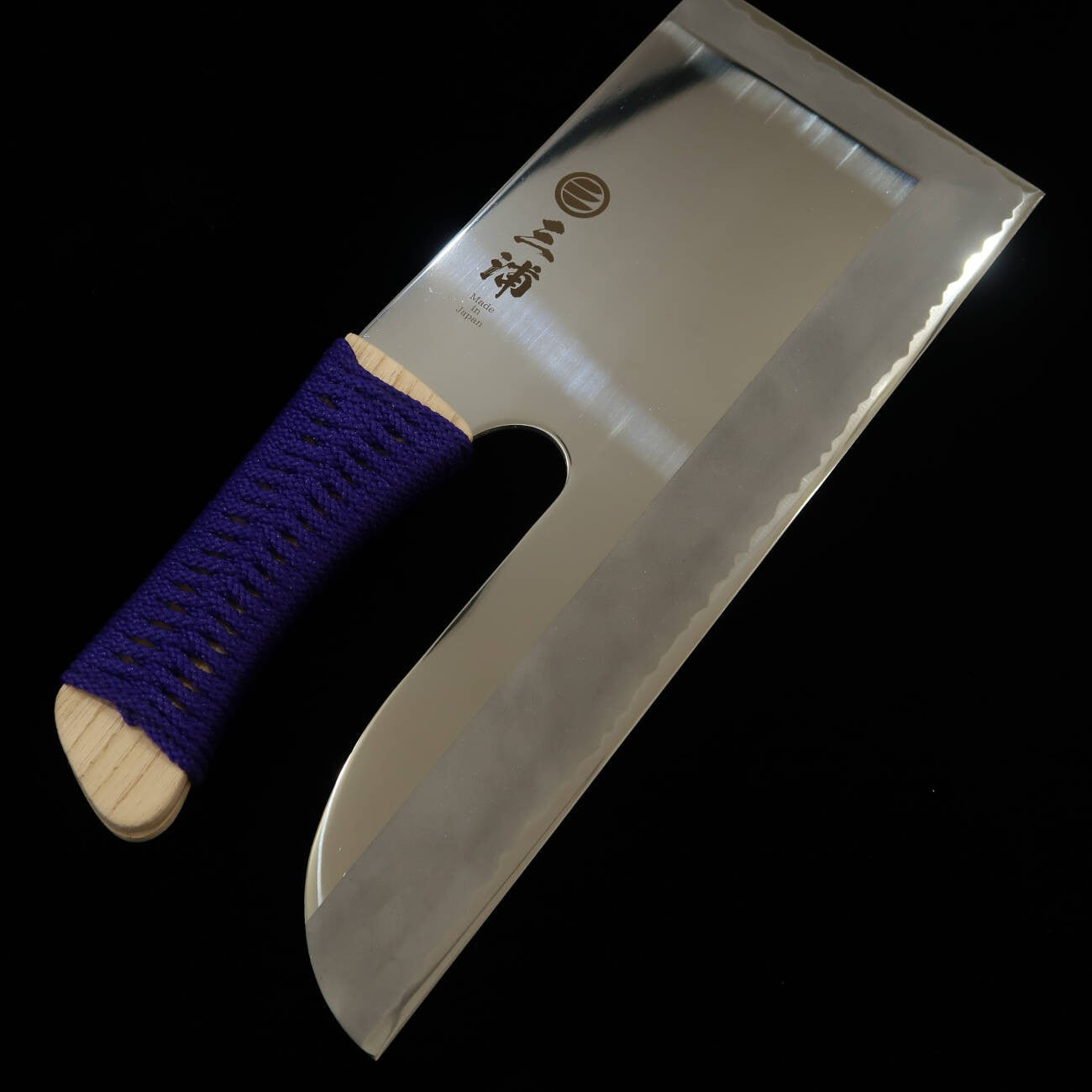 MIURA Sobakiri/Menkiri stainless steel with purple string-wrapped handle (330mm)