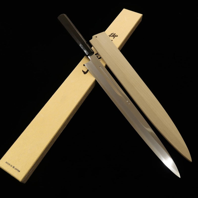 Yanagiba MIURA Ginsan Steel with Ebony Handle, Magnolia Sheath, (330mm)