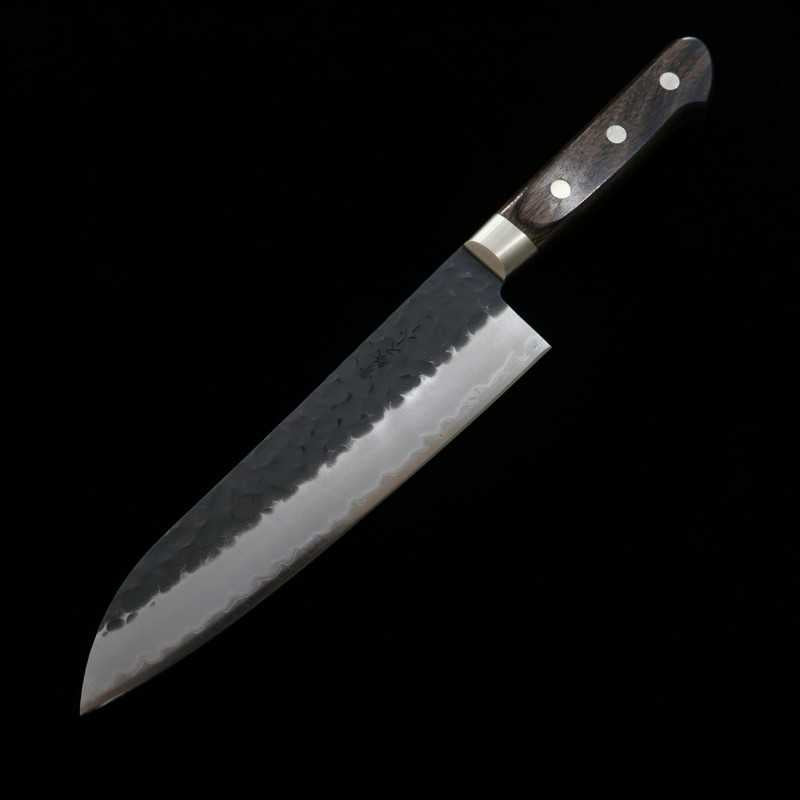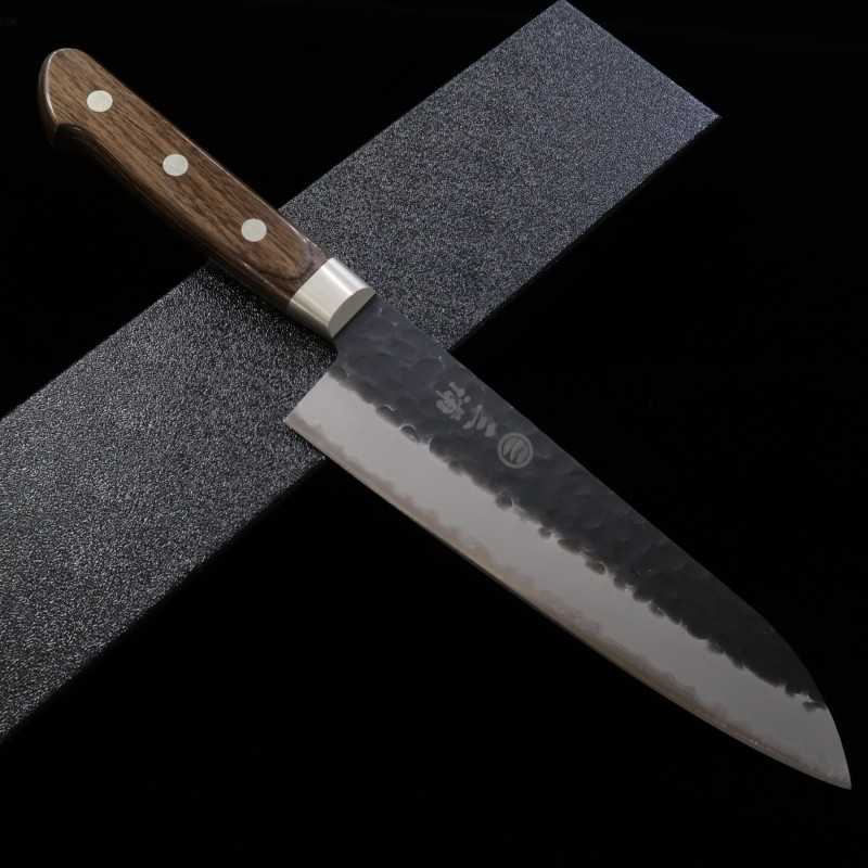 Santoku MIURA Aogami Super martilleado negro Mango de contrachapado marrón oscuro (180mm)