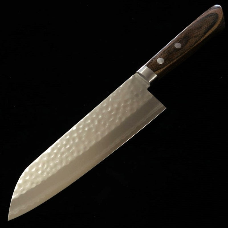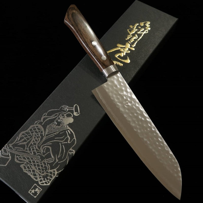 Santoku MIURA Koko-ryu VG10, martillado, Damasco, mango de fresno marrón (170mm)