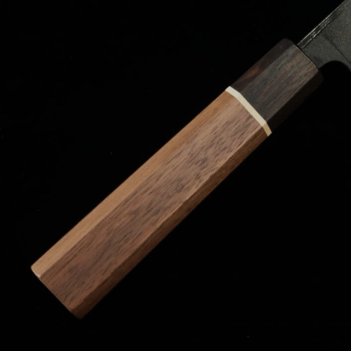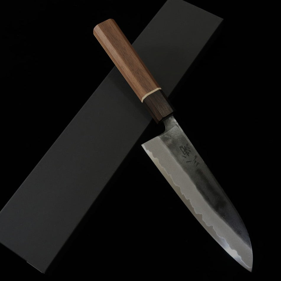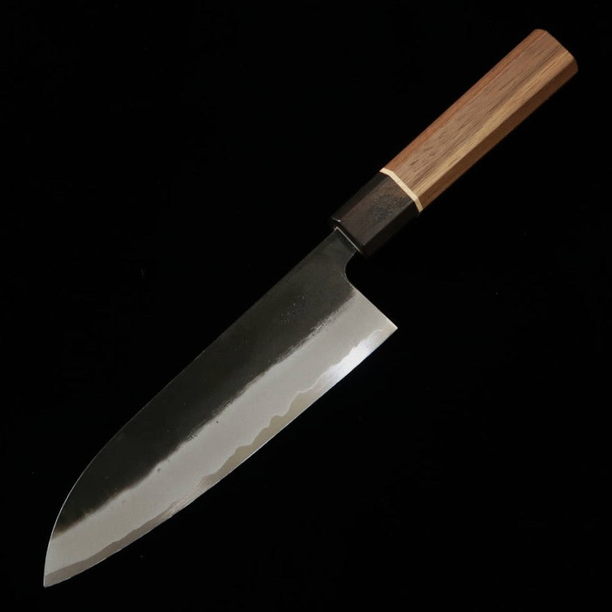 Santoku Murasame MIURA Aogami nº2 acabado kurochi mango octogonal de nogal (165 mm)
