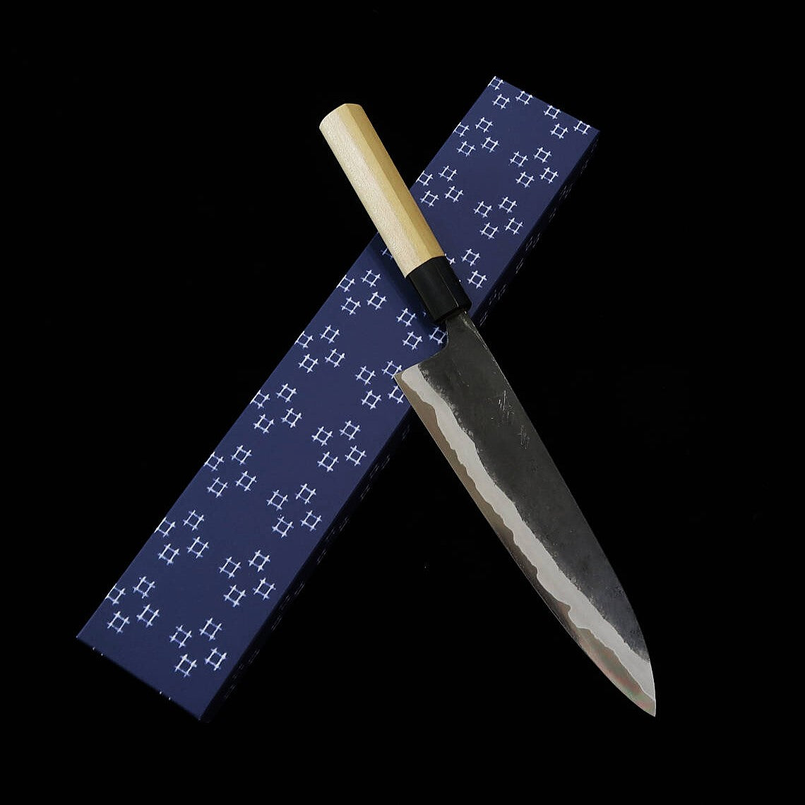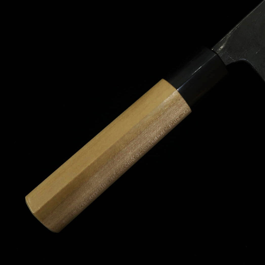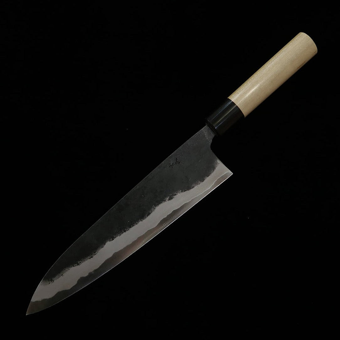 MIURA por Shindo Cuchillo Gyuto Acero Aogami nº2 Acabado Kurouchi Mango de magnolia con refuerzo de cuerno de búfalo forma de castaña (180-270mm)