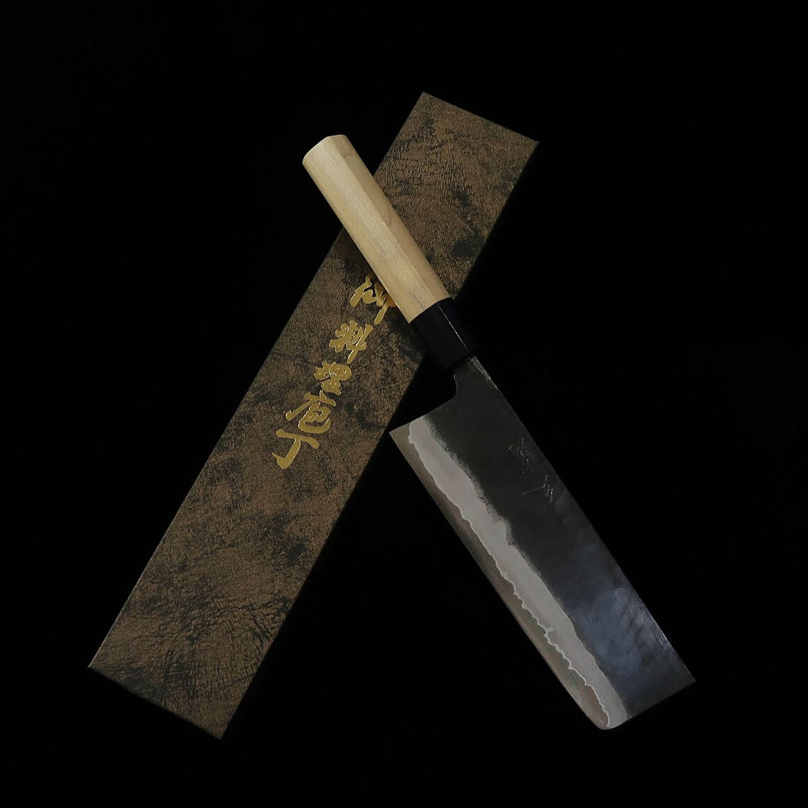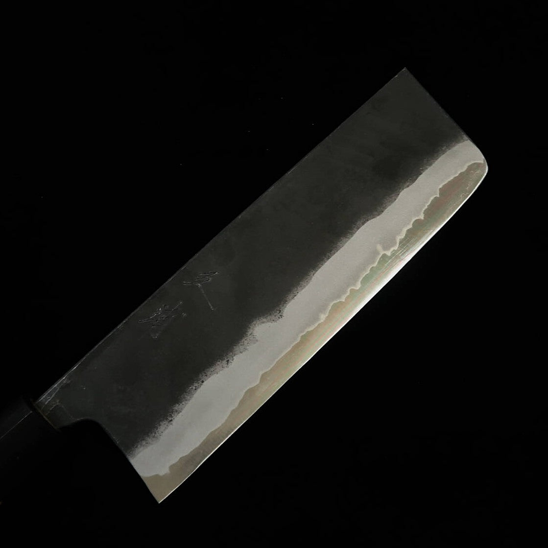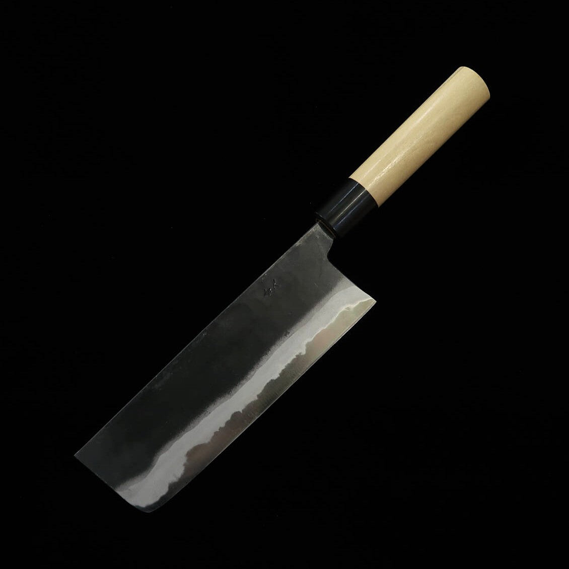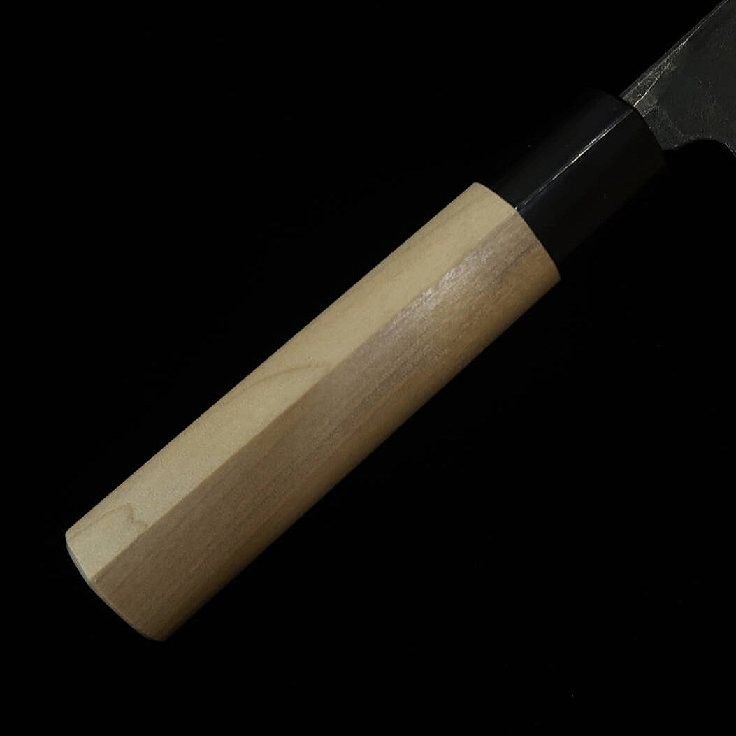 Nakiri MIURA por Shindo Aogami nº2 Acabado Kurouchi Mango de magnolia con refuerzo de cuerno de búfalo y castaña (165mm)