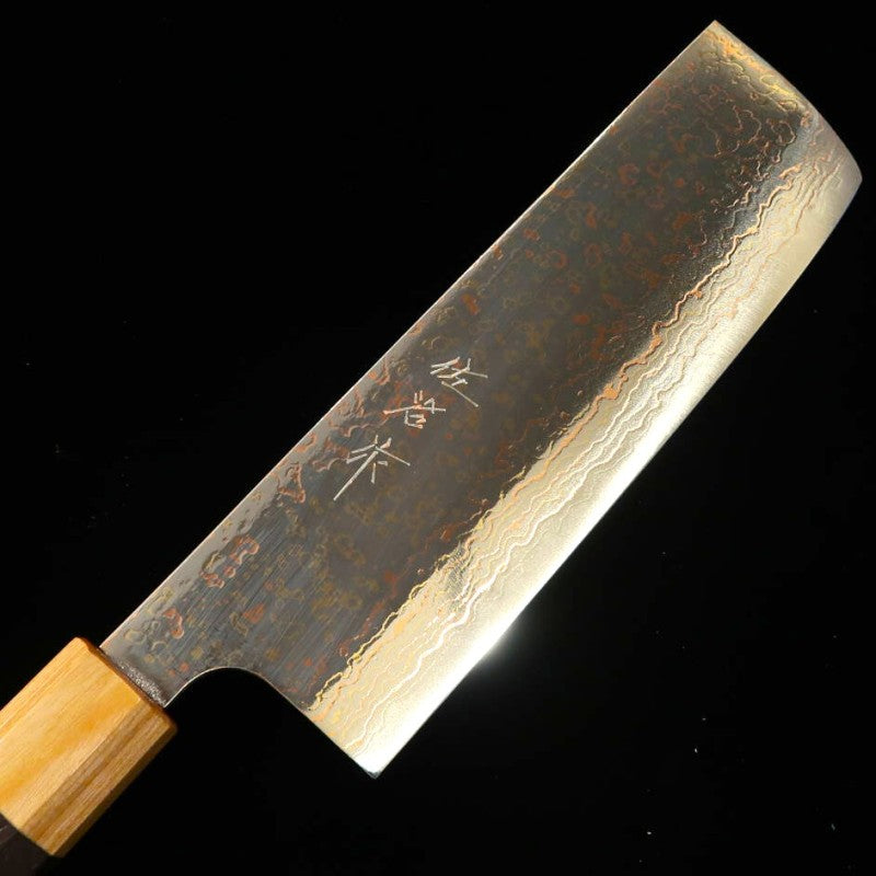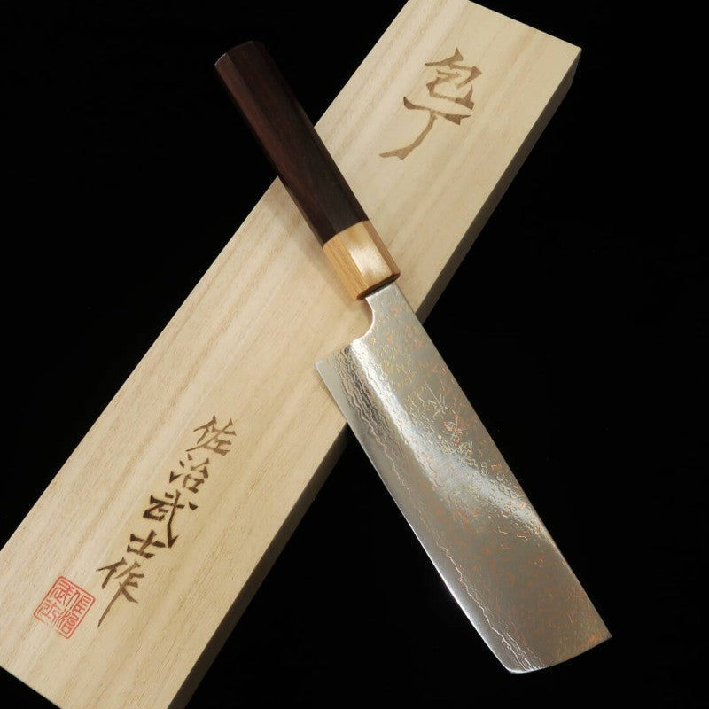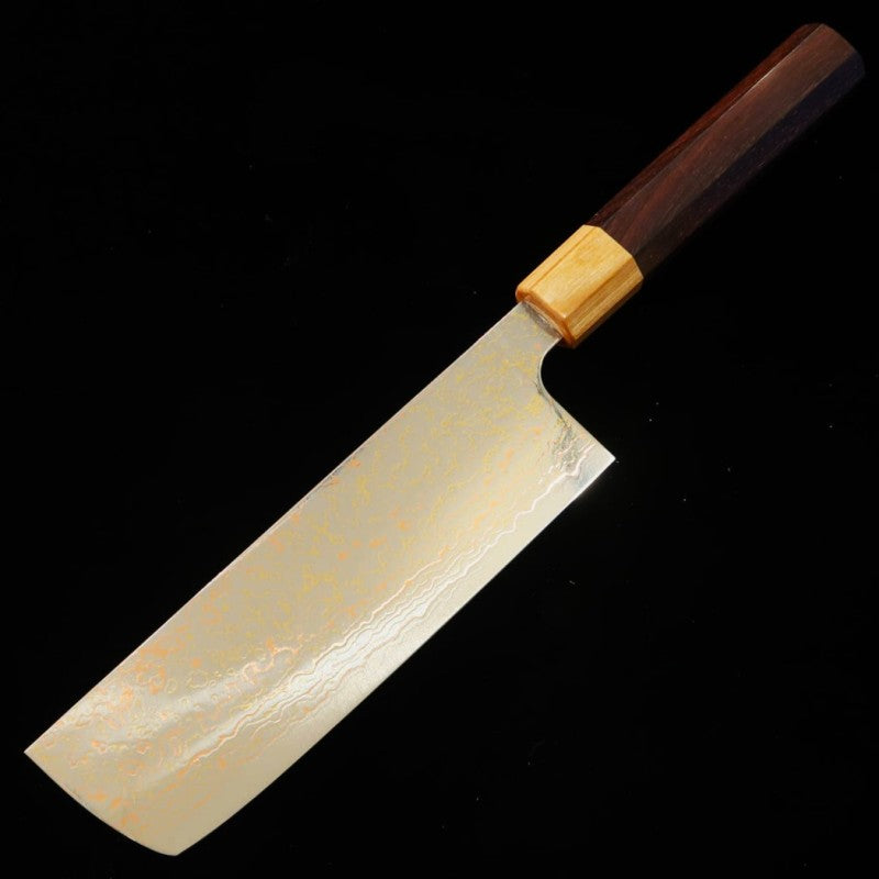 SAJI TAKESHI Nakiri VG10 Damasco de color, mango octogonal de palisandro (165mm)