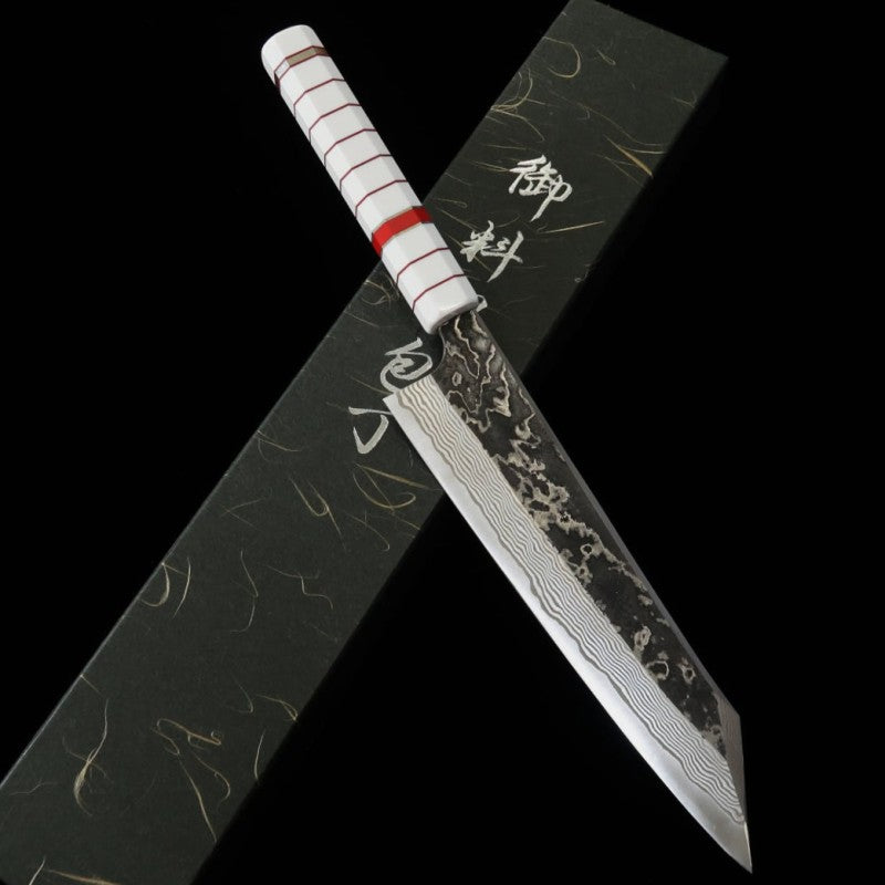HATSUKOKORO - Yorokobi SP - SLD acabado kuro-uchi blast, mango personalizado, kiritsuke gyuto (240mm)