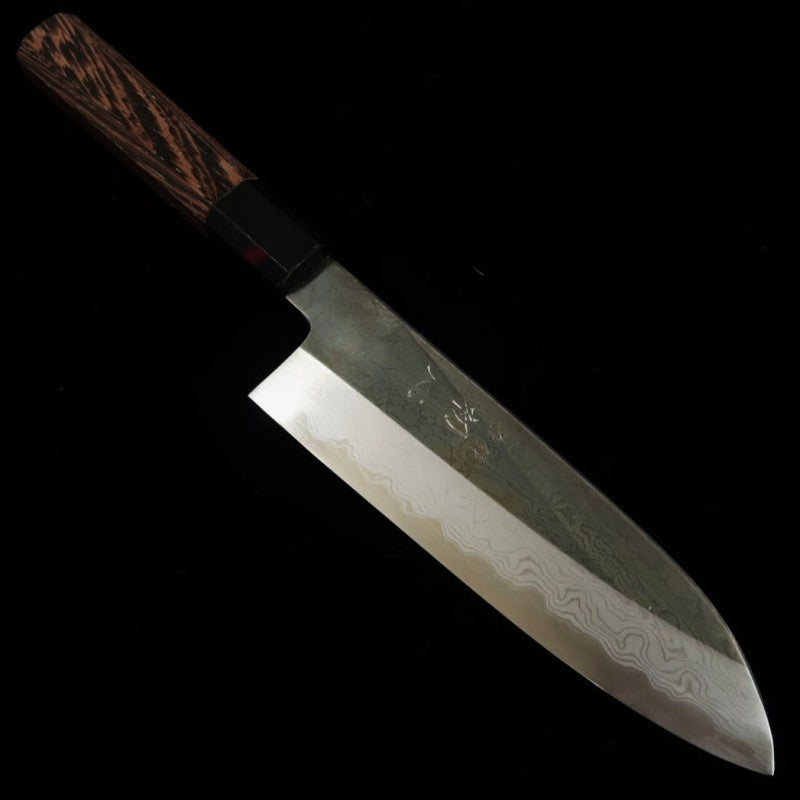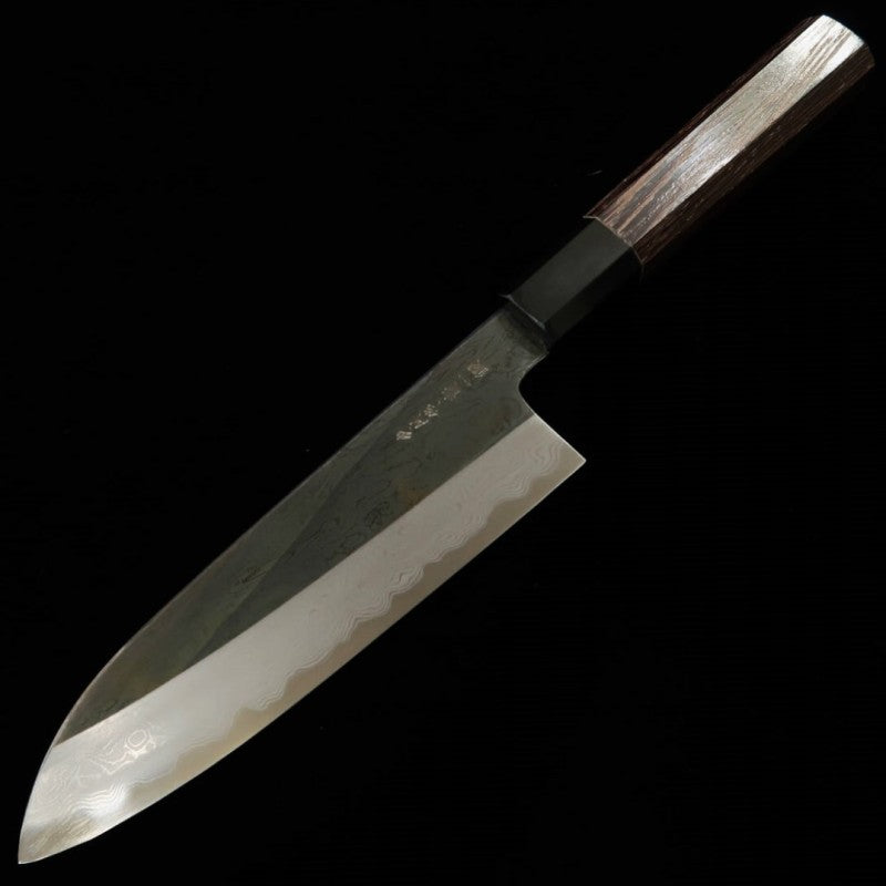 Hatsukokoro × Satoshi Nakagawa papel azul nº1 Damasco mango de wengué Santoku (180mm)