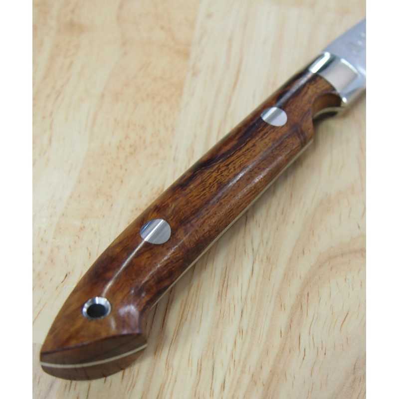 Cuchillo del artesano Yuta Katayama, quien ha perfeccionado su técnica en la ciudad de Echizen, prefectura de Fukui, famosa por la producción de cuchillería, y realiza desde piezas tradicionales hasta diseños únicos.
