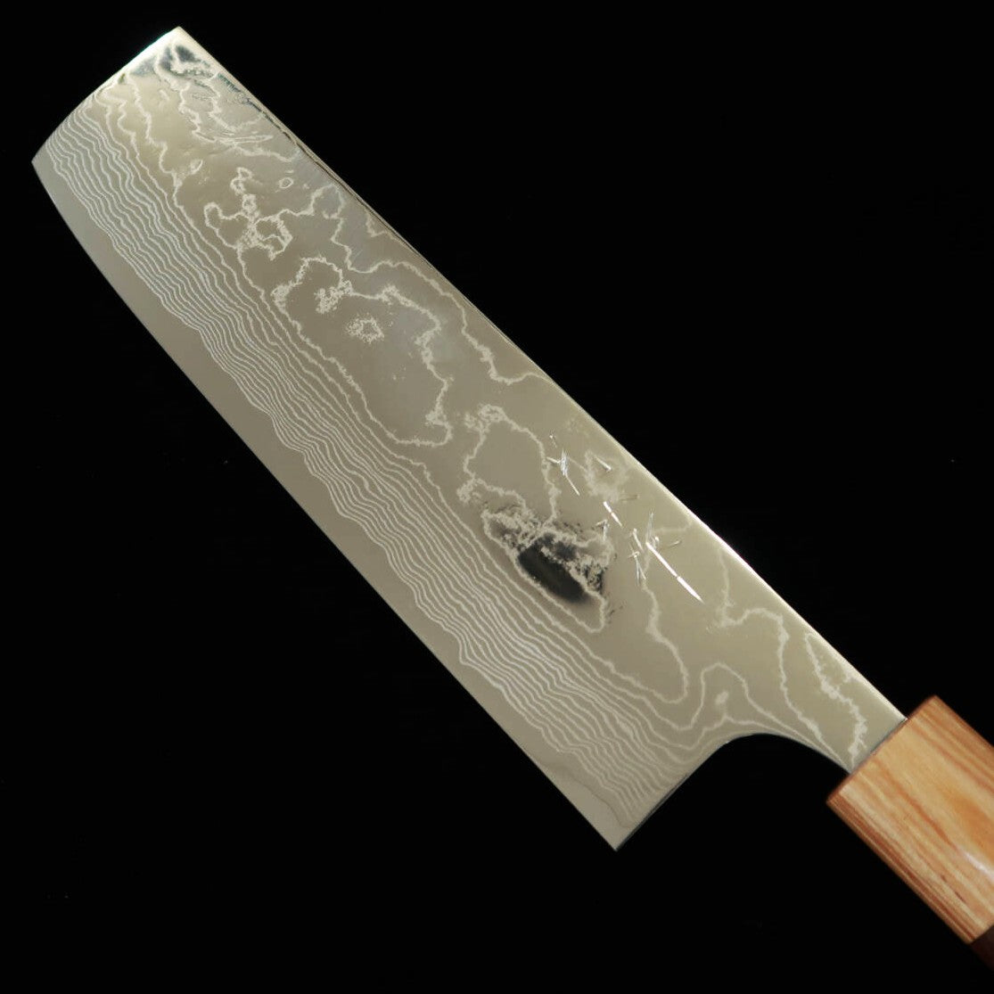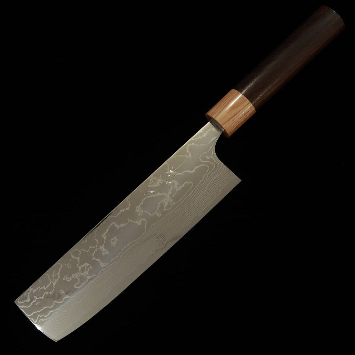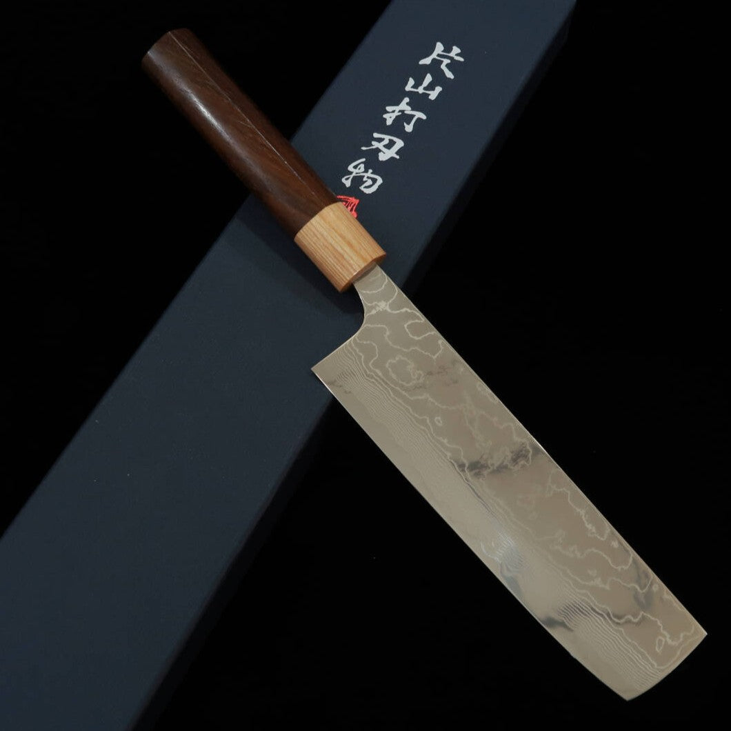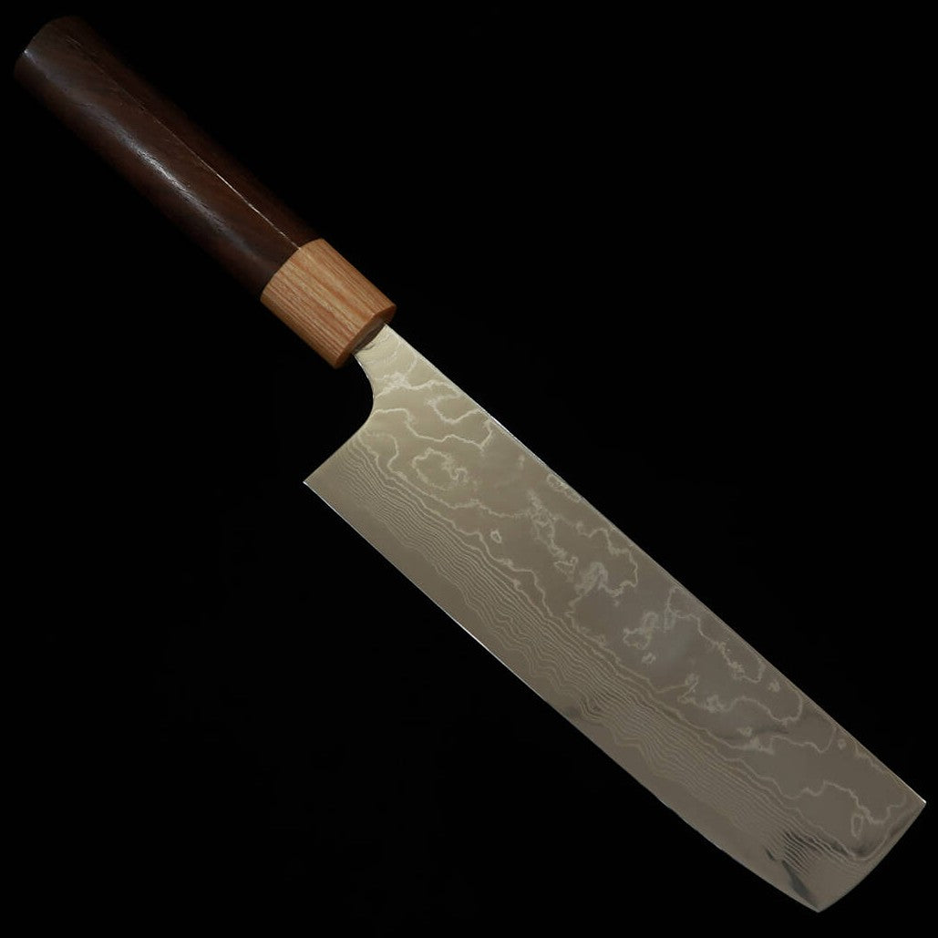 Yuta Katayama VG10 Damasco acabado pulido Nakiri mango de palo de rosa tipo castaña (170 mm)