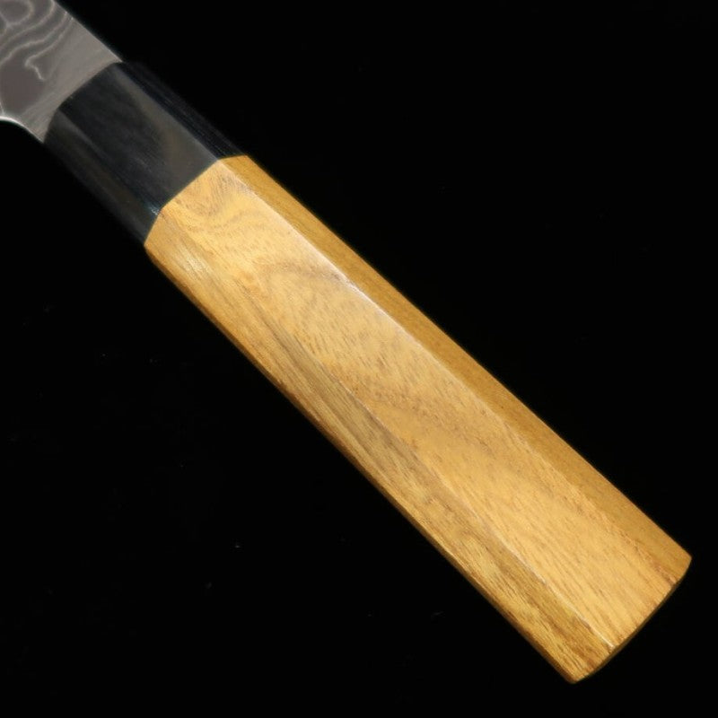 Yuta Katayama VG10 Damasco níquel Acabado corrosión Cuchillo Bunka Mango octogonal de olmo japonés (165mm)