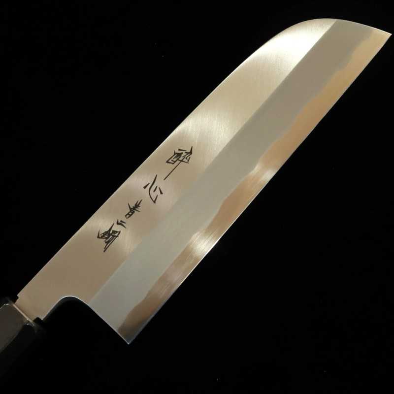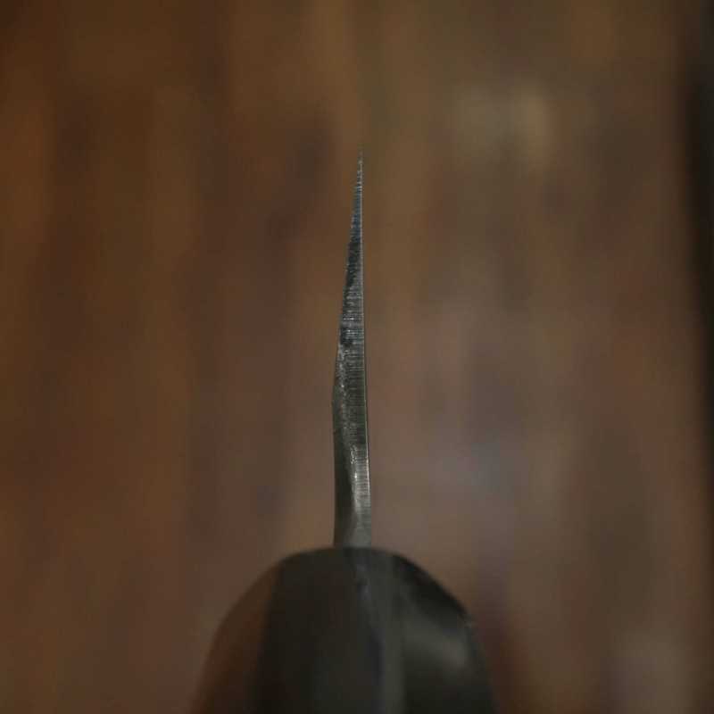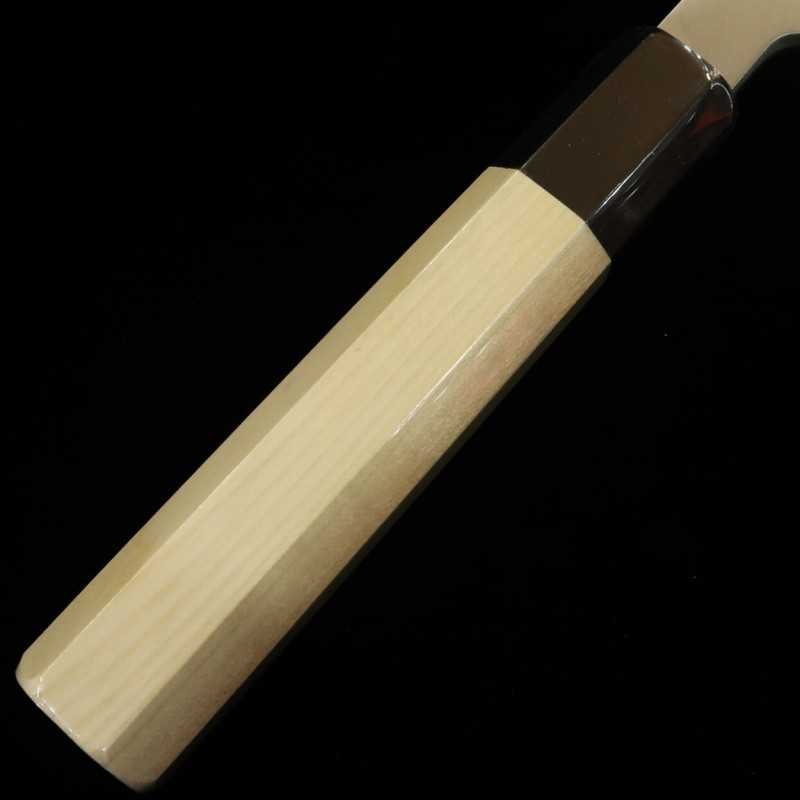 El uso de acero Aogami en el filo proporciona una durabilidad de corte prolongada, ideal para entornos profesionales.