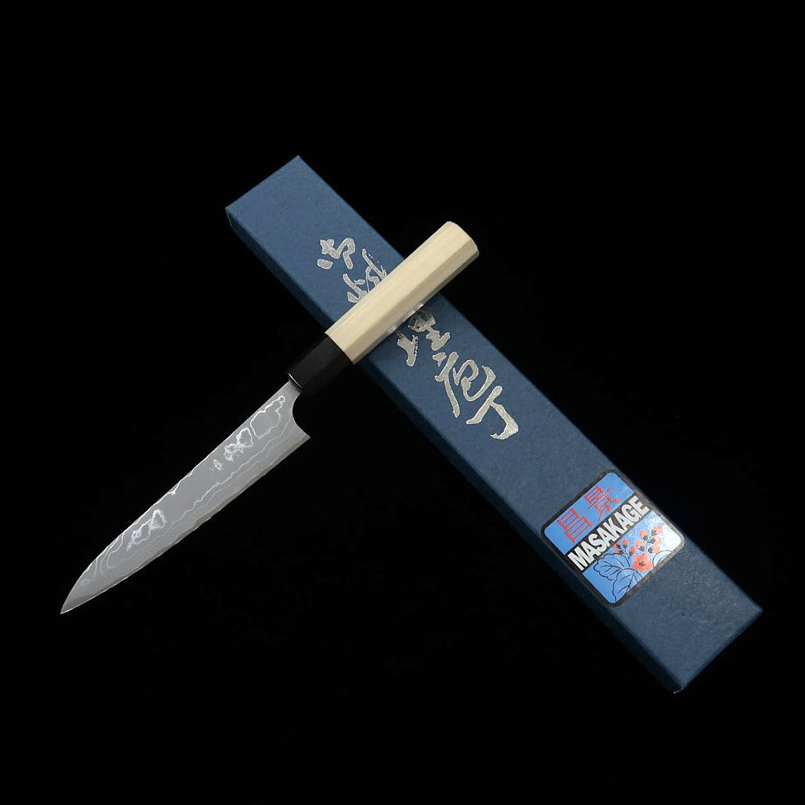 Petty MASAKAGE Shimo Shirogami no. 2 y damasco, mango octogonal de magnolia (150 mm)