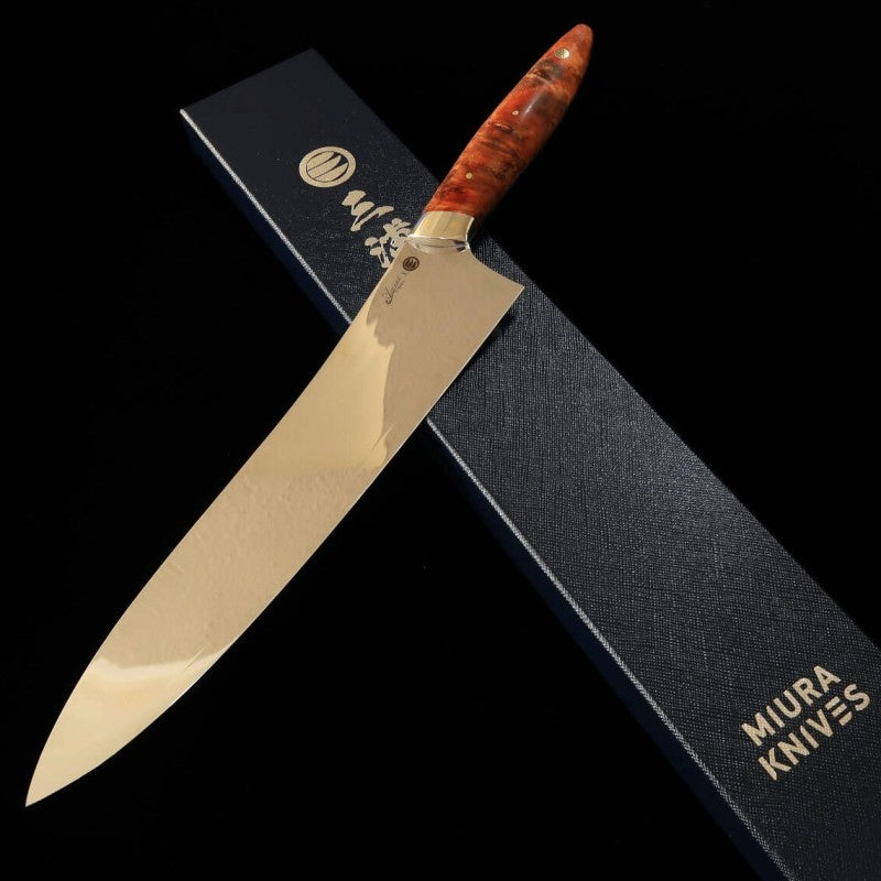 Gyuto Asurah Knives × Miura VG10 Acabado espejo Mango personalizado Naranja (240 mm)
