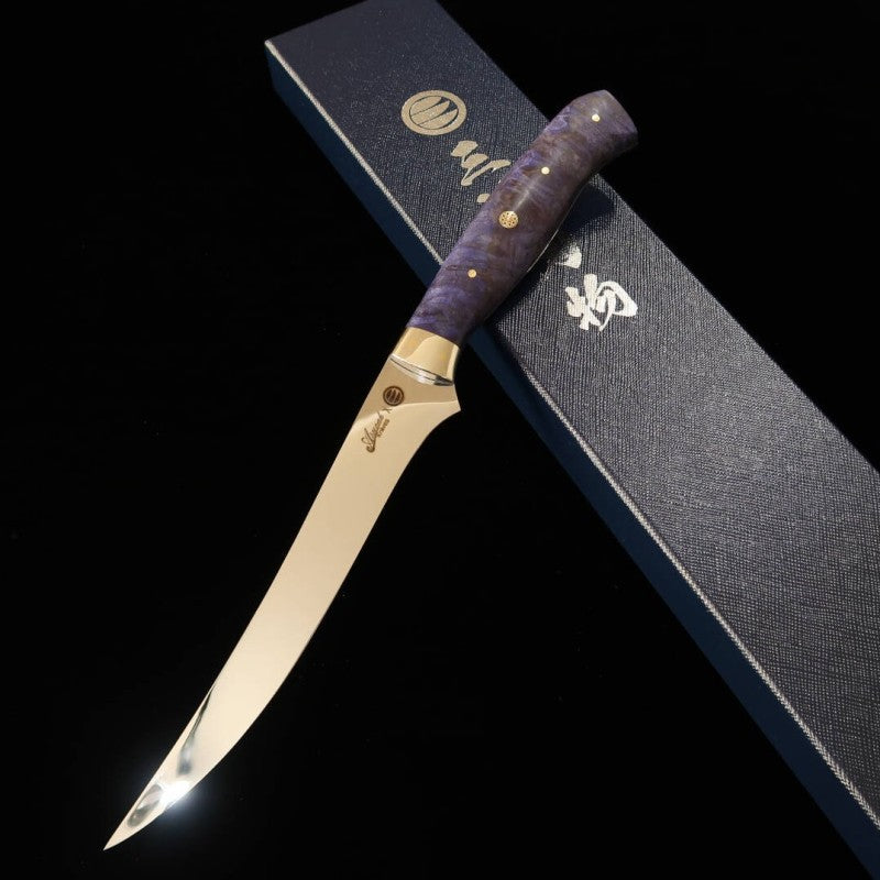 Cuchillo para filetear Asurah Knives × Miura SUS420J2 acabado espejo, mango personalizado, cuchillo fileteador (150 mm)