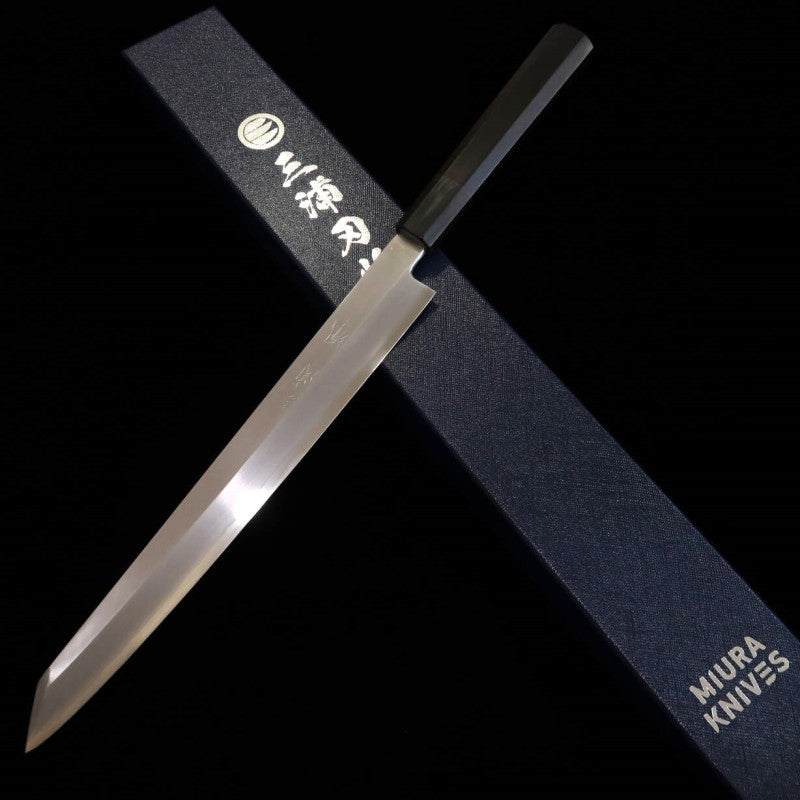 Miura Obidama Kiritsuke Yanagiba Acier Argent No.3 Manche octogonal en ébène pour gaucher (270/300 mm)