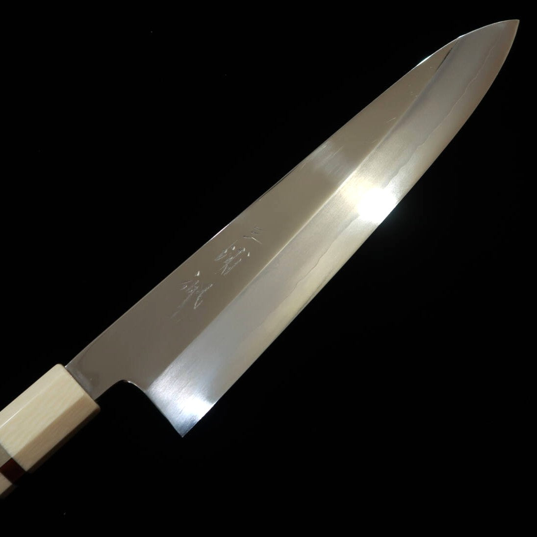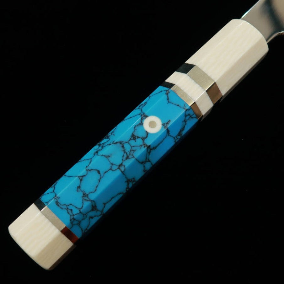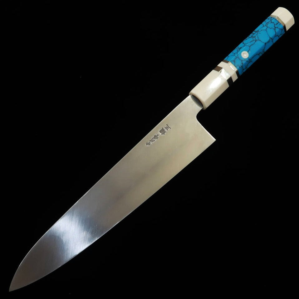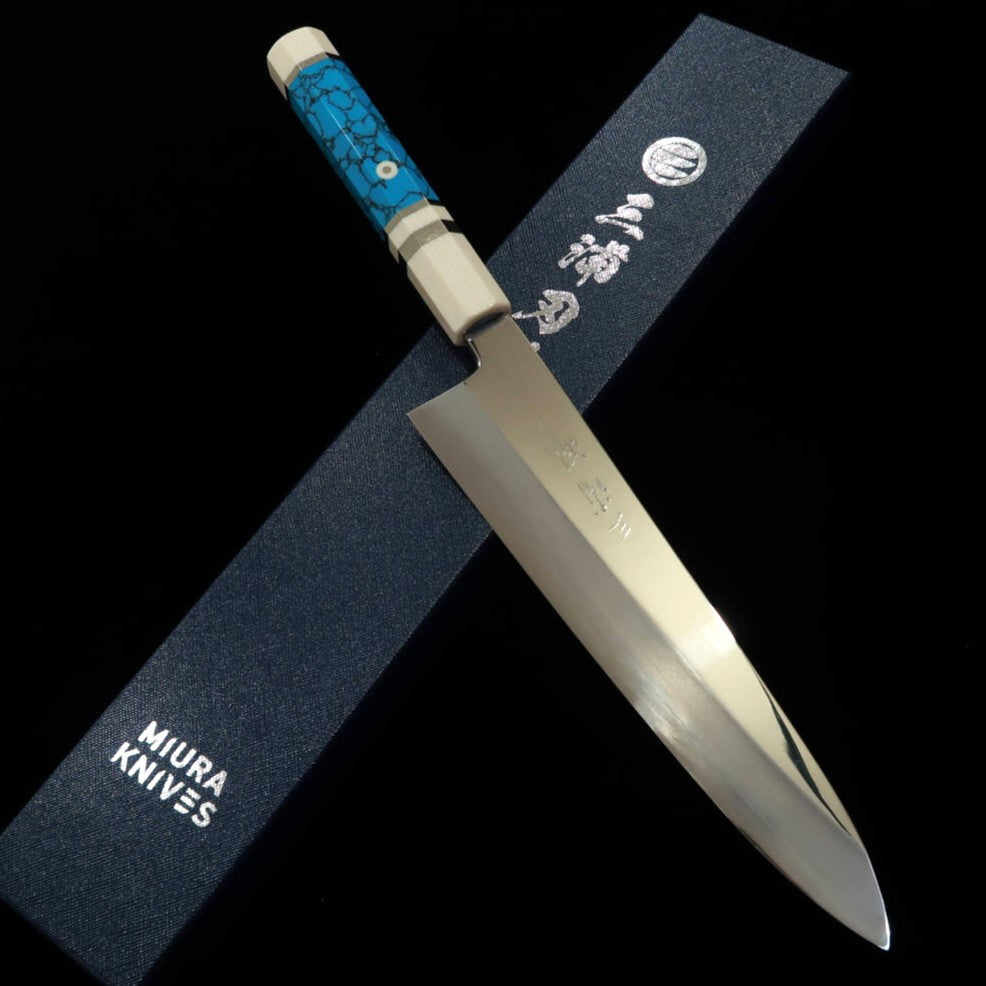 Miura Obidama Gyuto à simple biseau Gin-san n°3 finition miroir manche custom turquoise (240 mm)