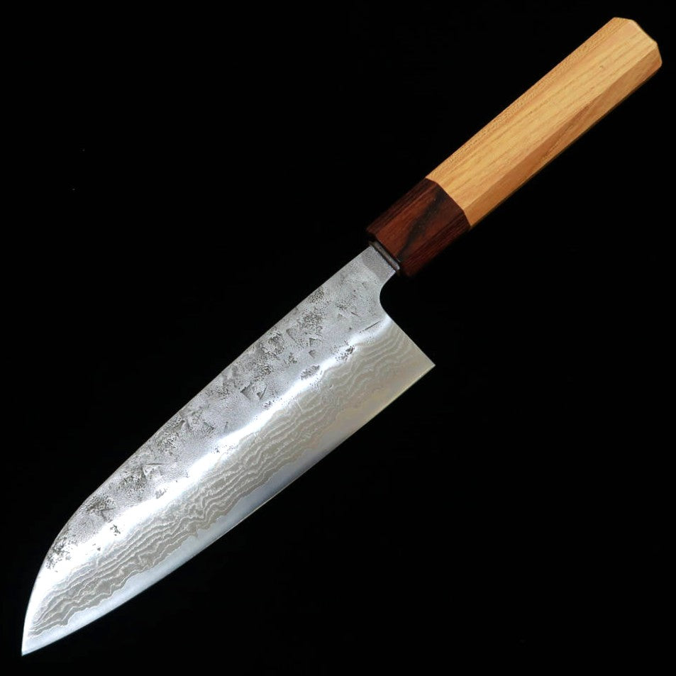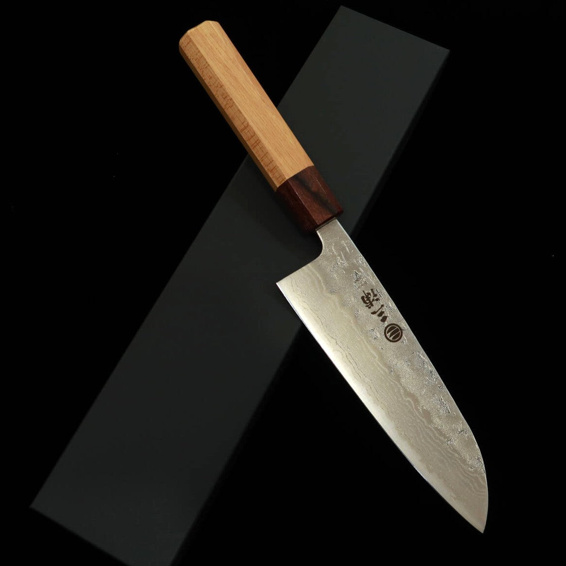 MIURA, couteau Santoku, acier suédois, finition Nashiji damassée, manche octogonal en zelkova (165 mm)
