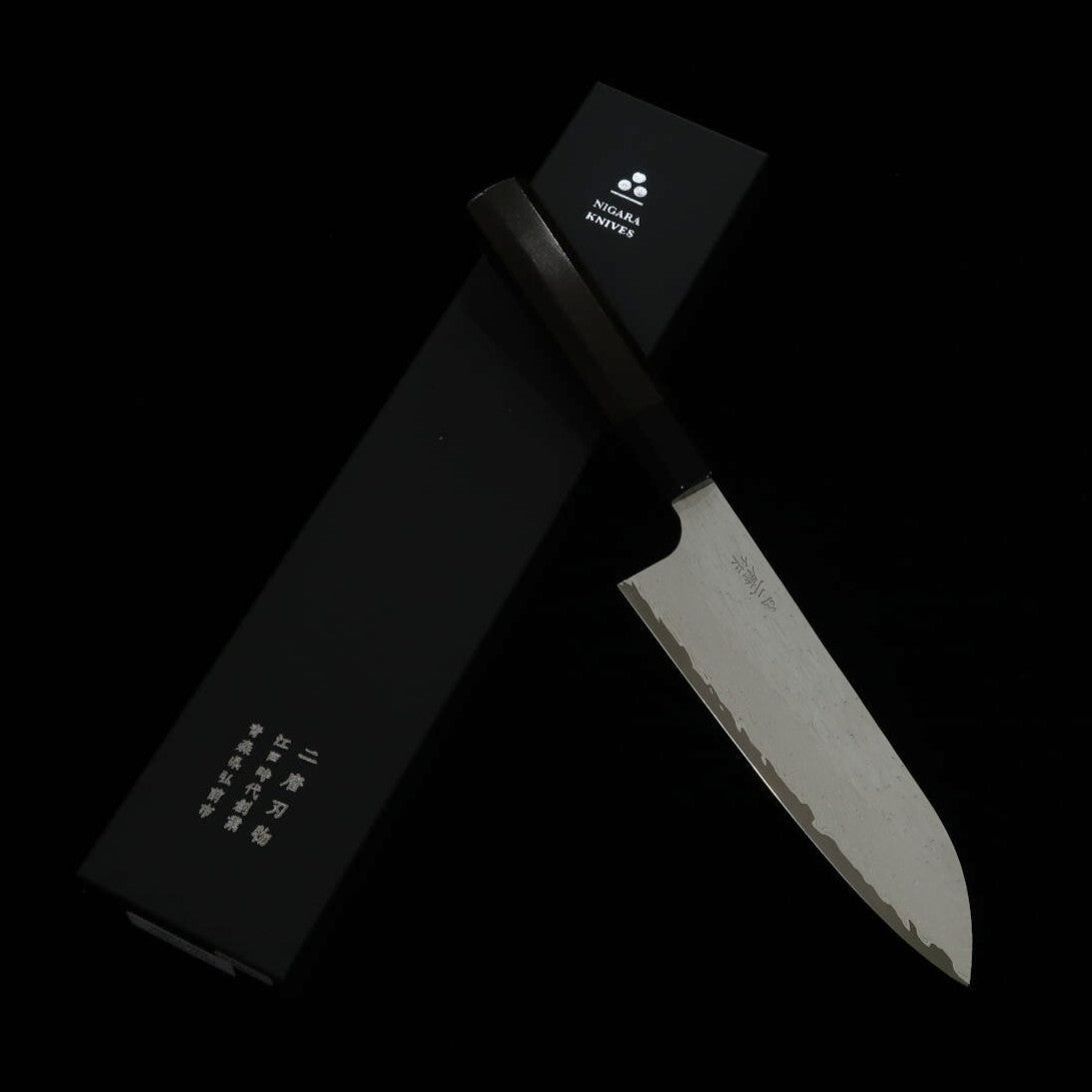 Nigara VG XEOS, damas martelé, Santoku, manche en ébène (185 mm).