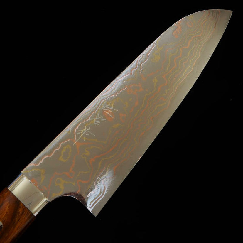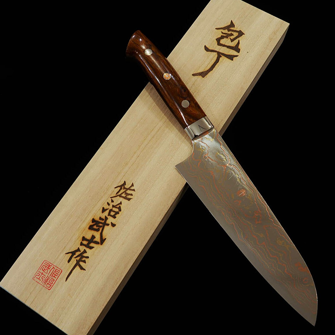 Saji Takeshi SAJI TAKESHI Acier bleu n°2 Damas coloré Santoku manche en bois de fer (180 mm)