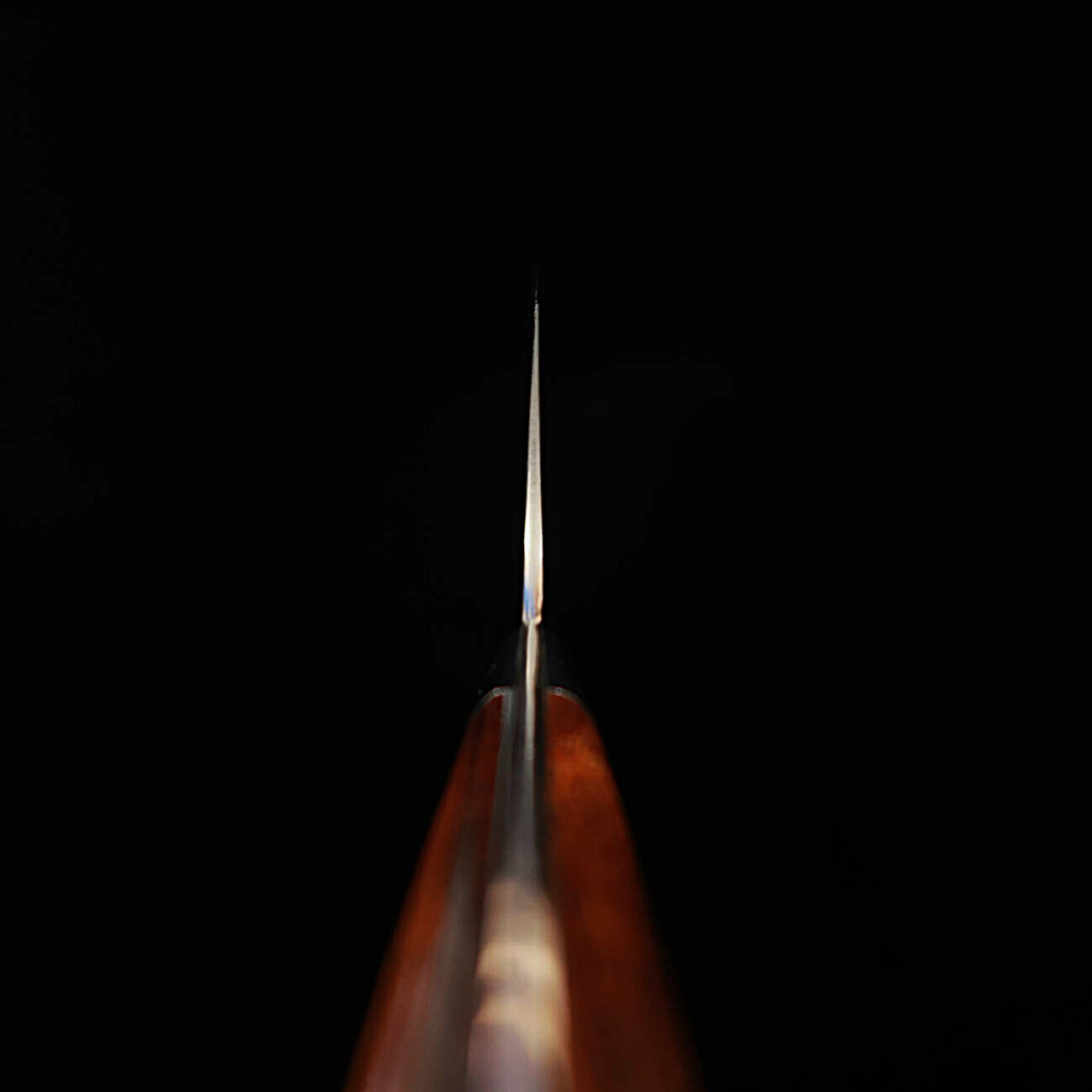 Un couteau de chef typique de Takeshi Saji, avec un poids bien équilibré.