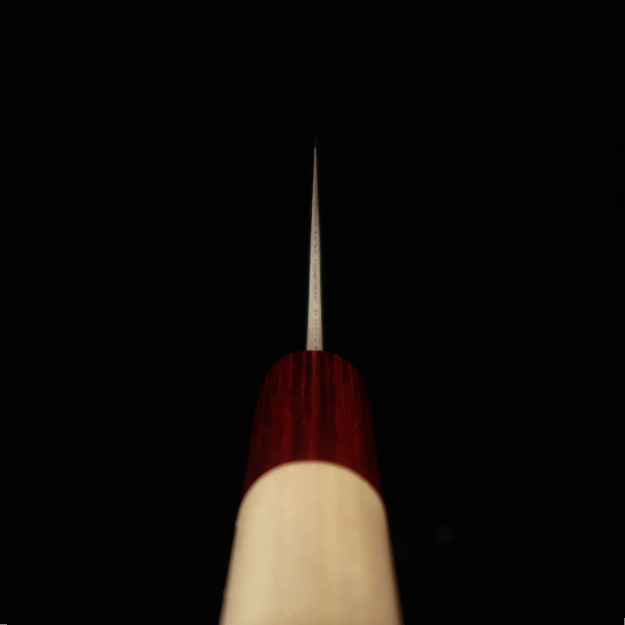 Couteau sandwich : acier blanc No.2 (carbone) entre deux couches d’inox.