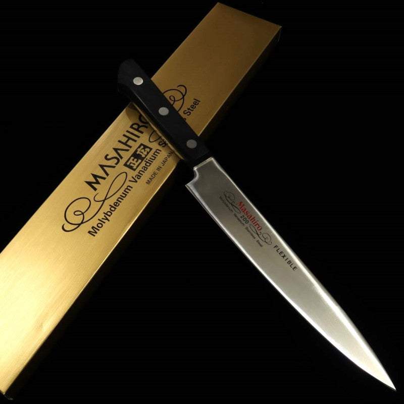 Un couteau à découper Masahiro doté d’une lame flexible.