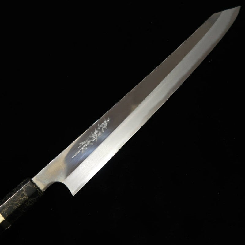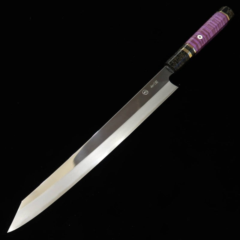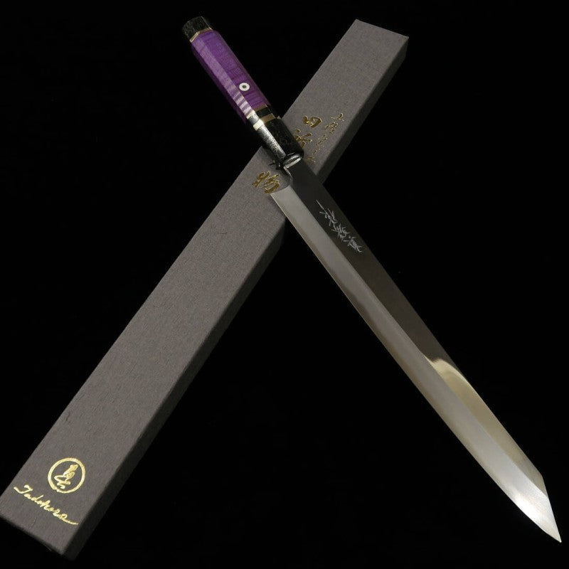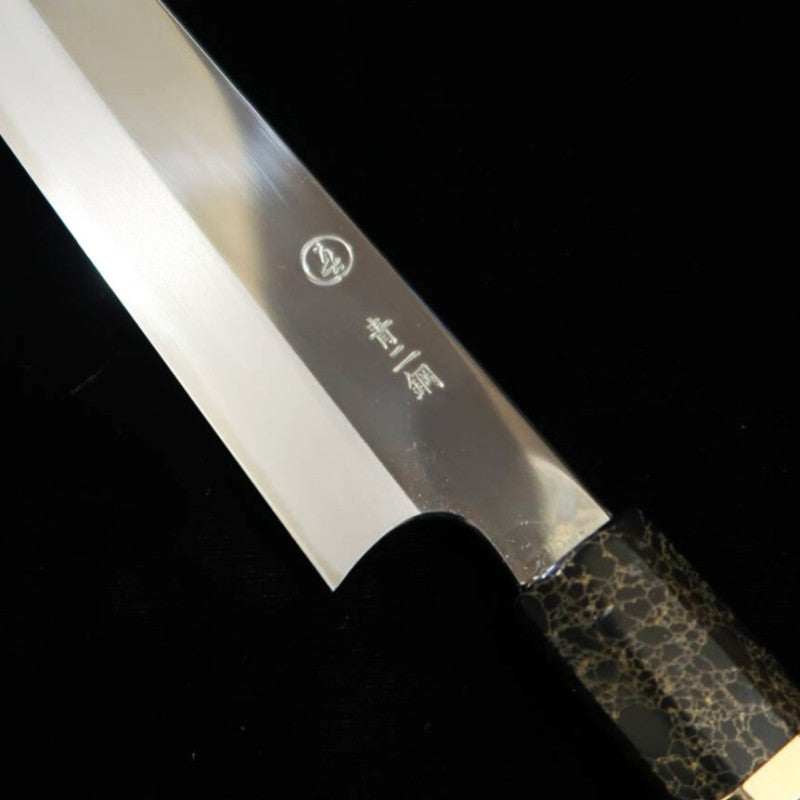 Tadokoro Hamono, Makoto, finition miroir, acier bleu n°2, couteau à trancher Kirituke, manche en bois stabilisé (300 mm)