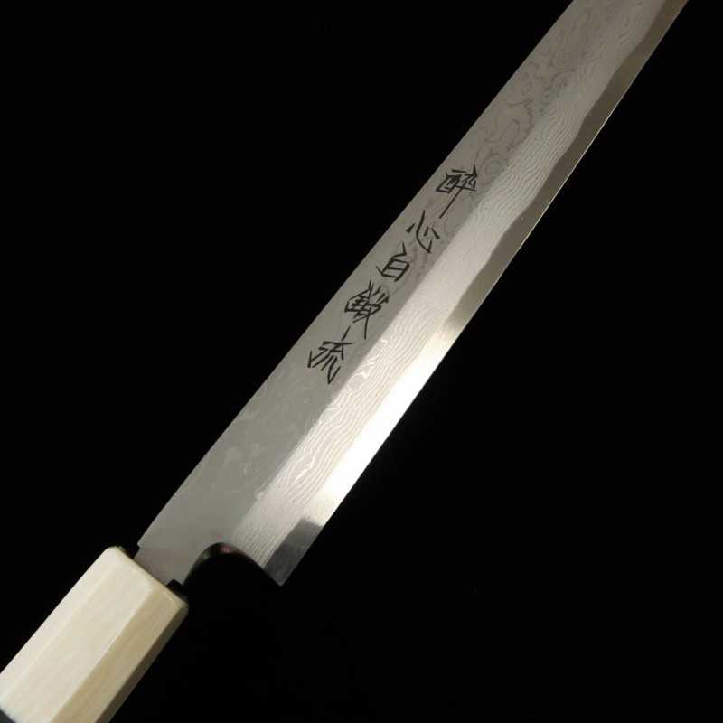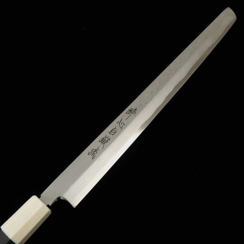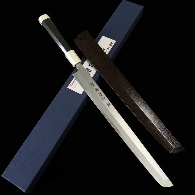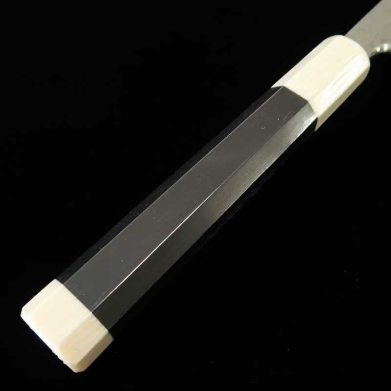 SUISIN Suisin Kenji Togashi Acier Blanc No.1 Forgé à la main Takobiki pointe ronde Fourreau laqué Manche double anneau ébène/blanc (300/330mm)