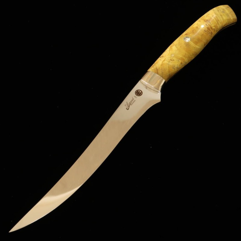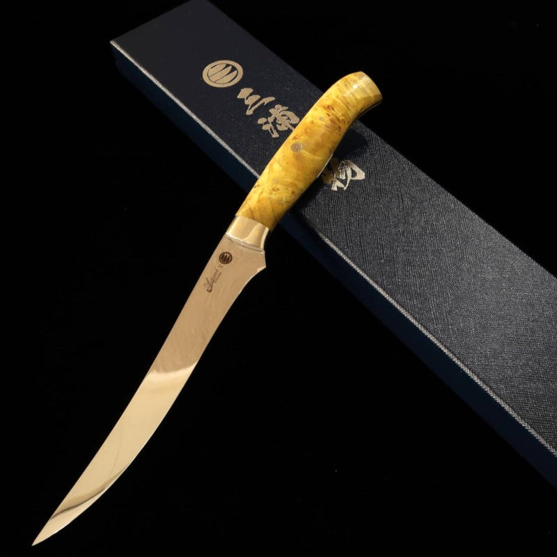 Asurah Knives × Miura SUS420J2 Finition miroir Manche customisé jaune Couteau à filet (160 mm)