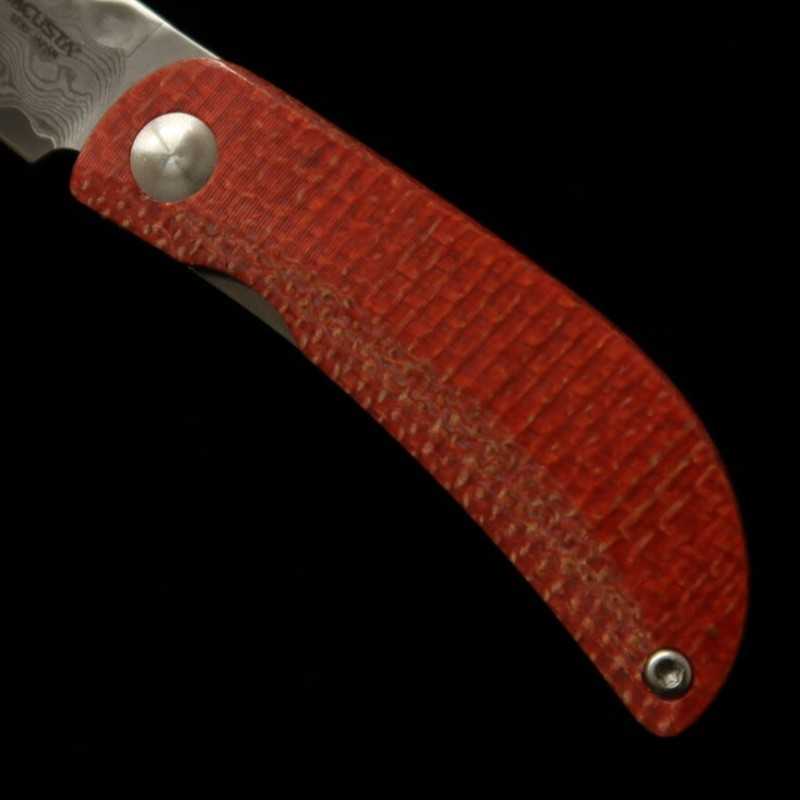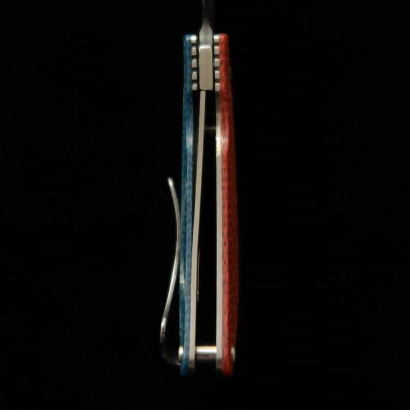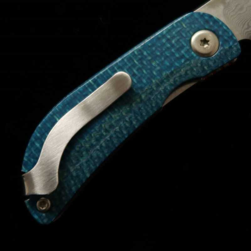 ハンドルは異なるカラーを組み合わせたマイカルタのスラブがお洒落な、常に側に置いておきたくなるようなナイフです。
