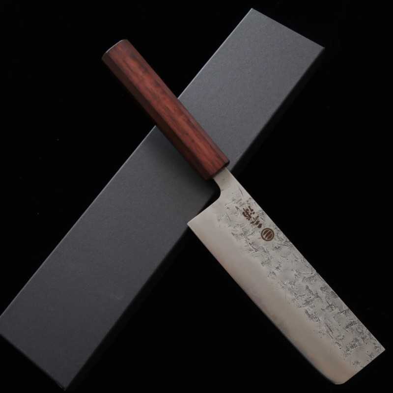 三浦 MIURA ステンレスSLD 梨地 菜切 樫紫八角柄 (165mm)