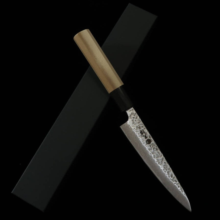 三浦刃物 MIURA ペティ AUS10 鎚目 ダママット 朴水牛柄 (135mm)