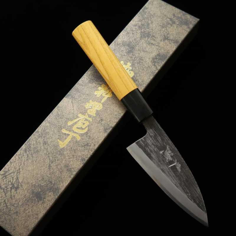 三浦 MIURA 青紙二号 黒打片刃 アジ切り包丁 欅柄(105mm)