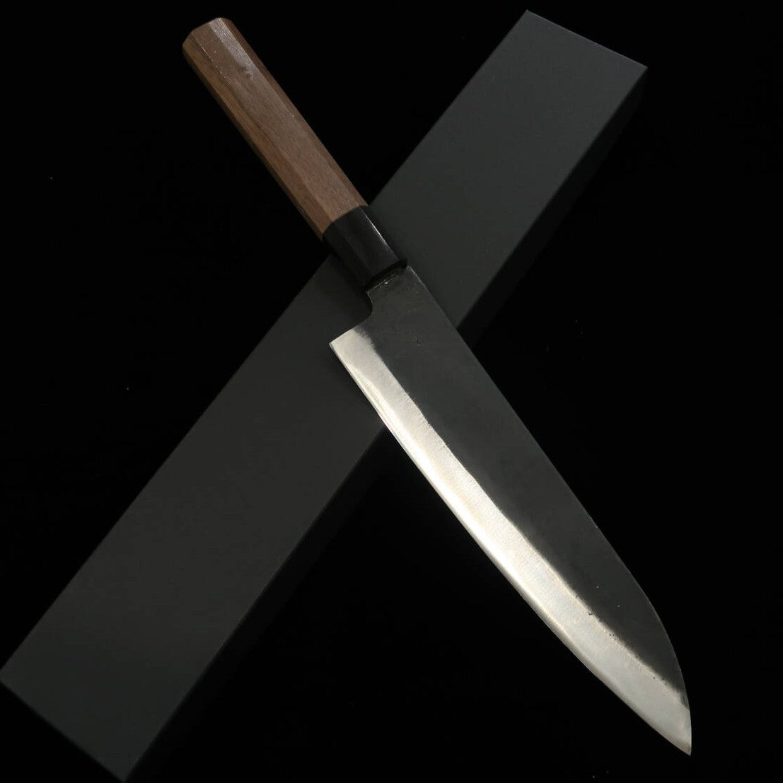 三浦 MIURA 牛刀 青紙一号 黒打ち仕上げ 胡桃八角柄 (210mm)