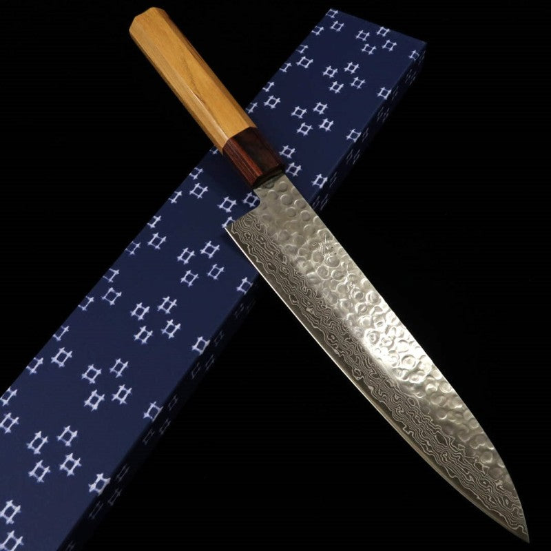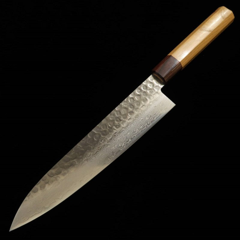 三浦 MIURA 牛刀 AUS10 鎚目 ダマスカス 欅八角柄 (210mm)