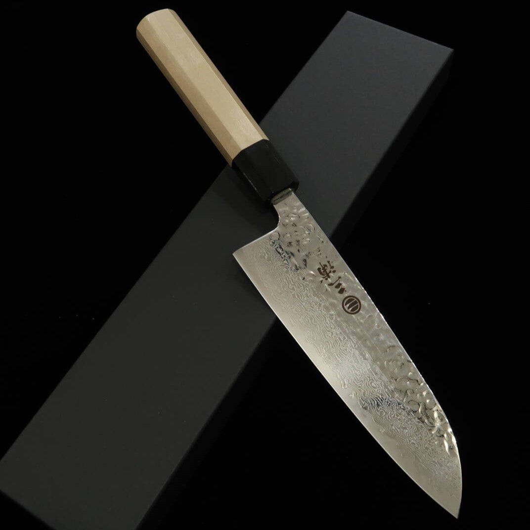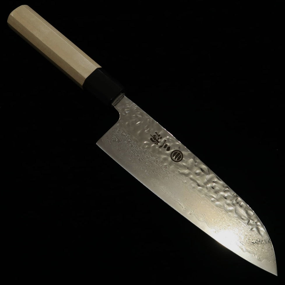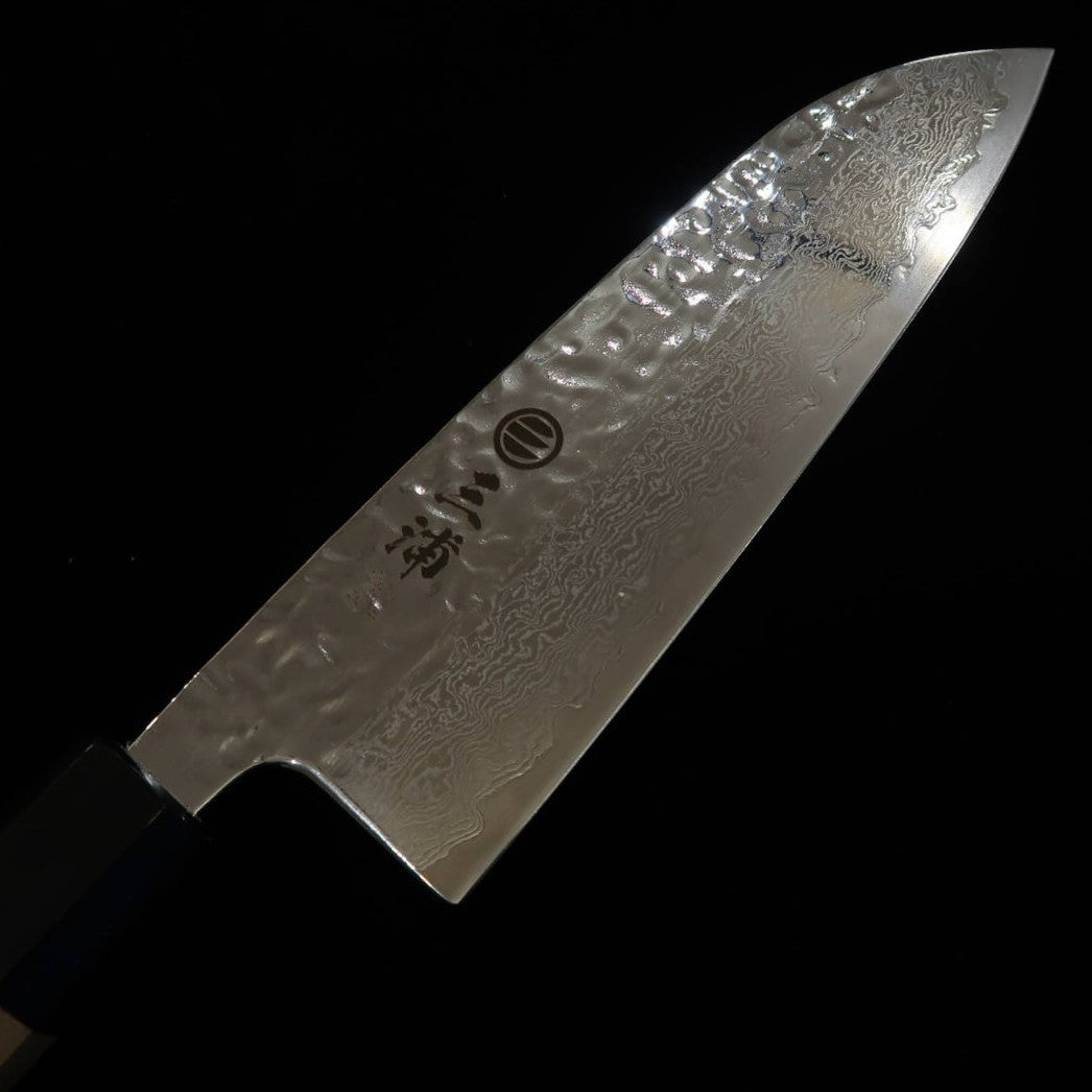 三浦MIURA 三徳 AUS10(10A) 鏡面 鎚目 ダマスカス 朴八角柄 (165mm)