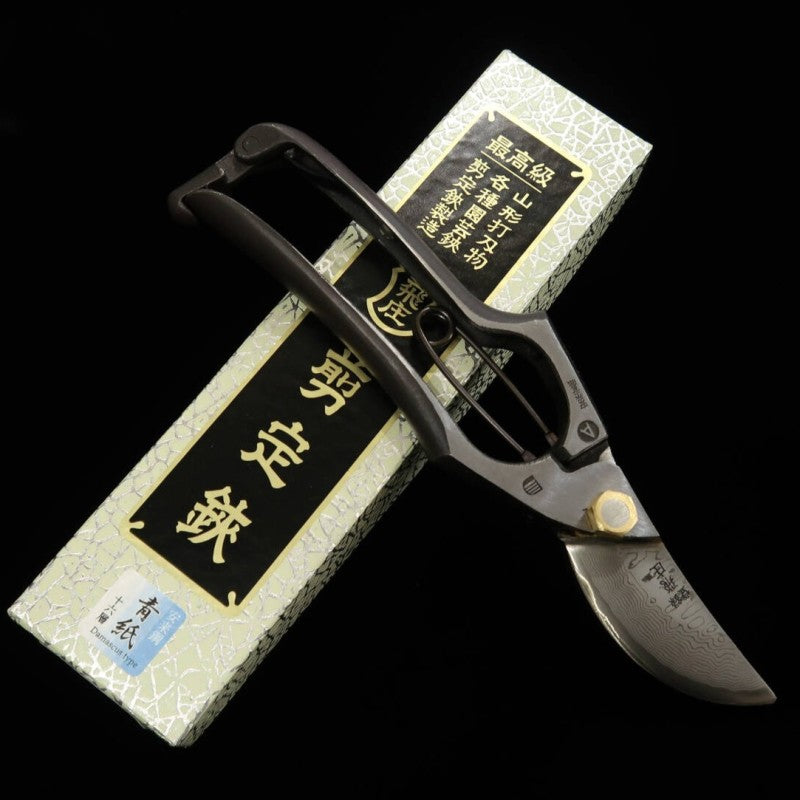 剪定鋏 山形打刃物 飛庄 安来鋼青紙 16層 ダマスカス Aタイプ (200mm)