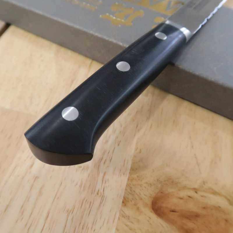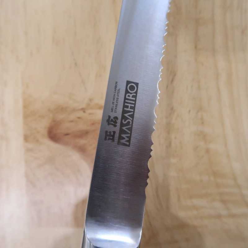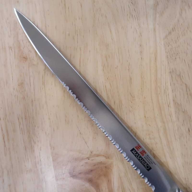 ストレート部分のセレーションと刃先のスムースなエッジが生ハムのスライスを助けます。