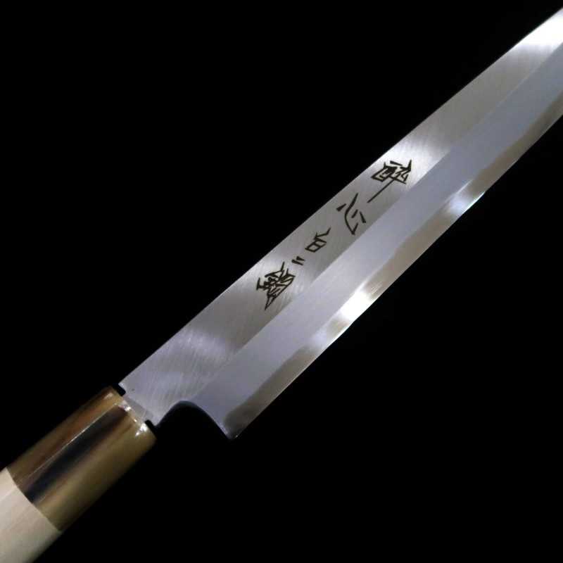 日立ヤスキ白紙2号(白二鋼)を低温で鍛造、火造りし、本職用として最も多く使用され、お求めやすく、種類も豊富で入門者からベテラン調理師まで十分満足いただける包丁です。