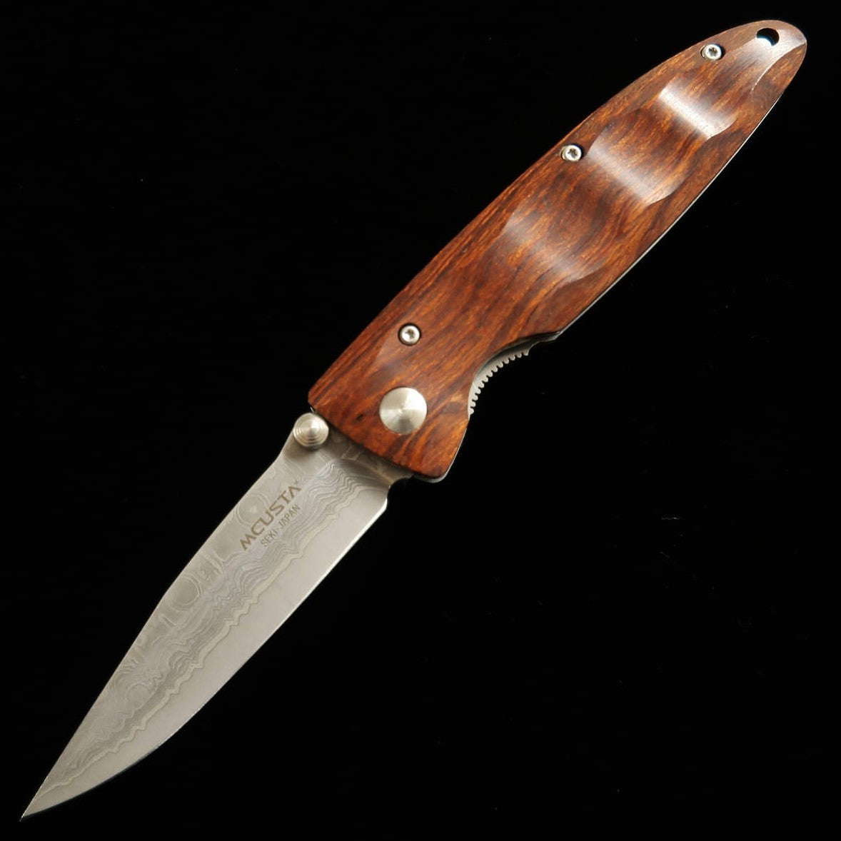 エムカスタMCUSTA クラシックウェイヴ ダマスカス アイアンウッド フォールディングナイフ MC-0018D (85mm)