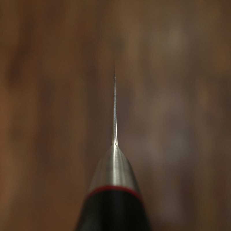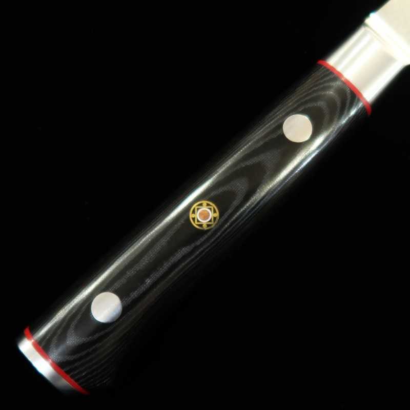 Terminal traseiro com o logo Zanmai gravado.A lâmina, assim como a Guren, é feita de VG10 em 33 camadas de Damasco.