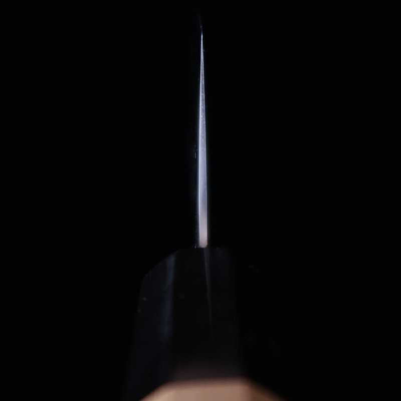 Utilizamos aço Shirogami No. 1, que foi especializado para ser duro, afiado e ter o mínimo possível de impurezas removidas.