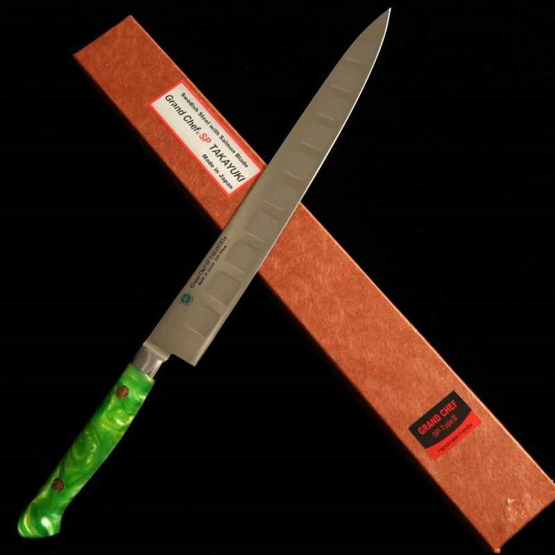 Este é o Sakai Takayuki Grand Chef SP Tipo III Dimple Sujihiki.