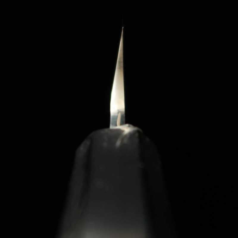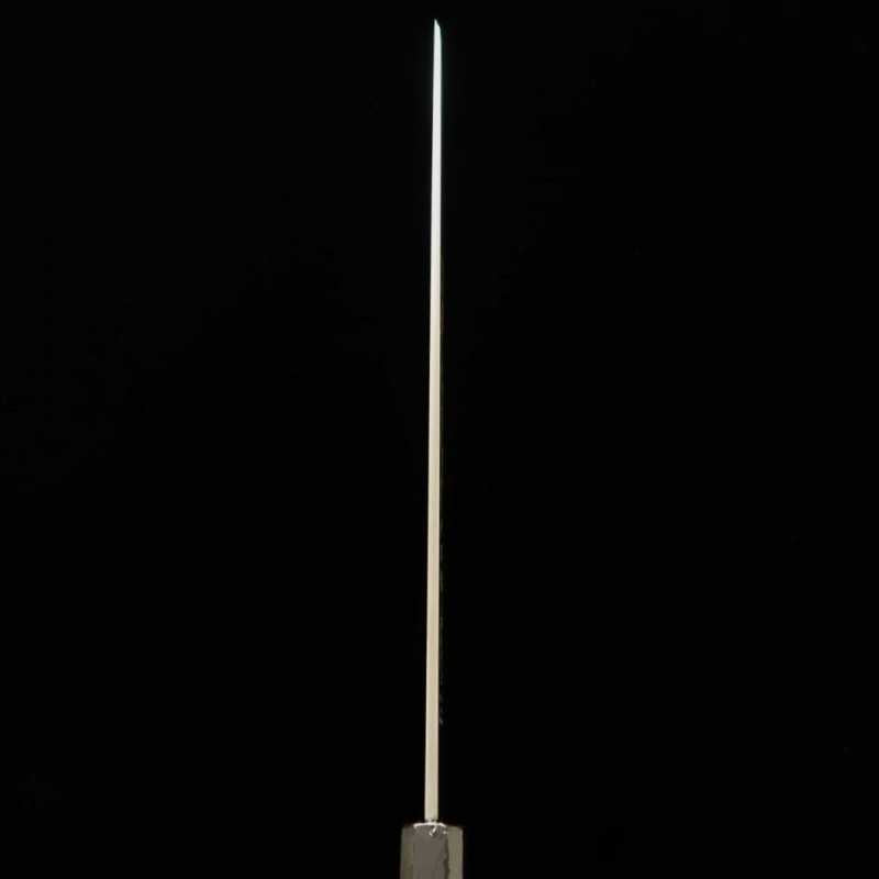 Esta é uma faca honyaki feita com VG10, um famoso aço inoxidável de alta qualidade usado em lâminas.