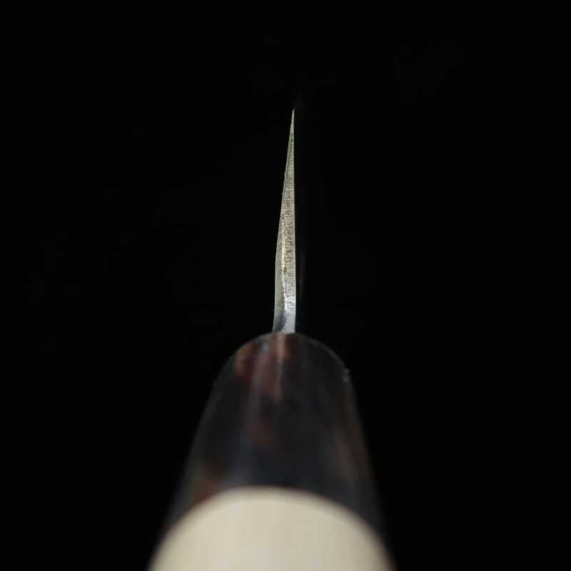 O aço Suishin Shironi tem pouquíssimas impurezas que interferem em sua nitidez, permitindo que ele exiba o fio de corte puro e afiado característico do aço carbono.