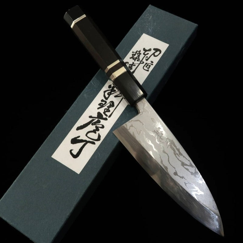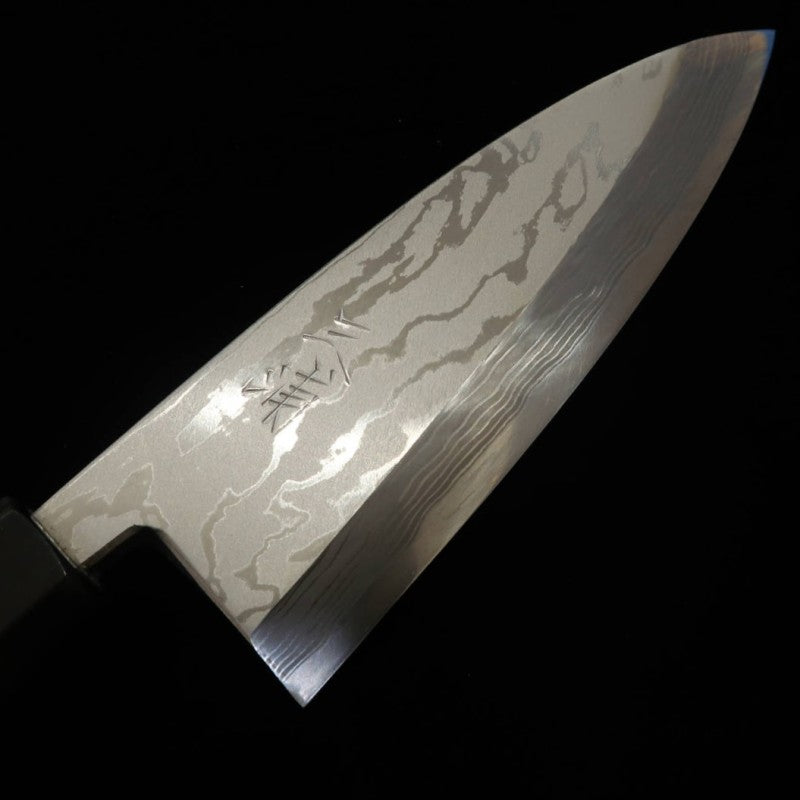 [OUTLET] MIURA Deba Afiada Aogami #2 Damasco com Cabo de Ébano e Anel de Prata (150mm) – Cabo com rachadura