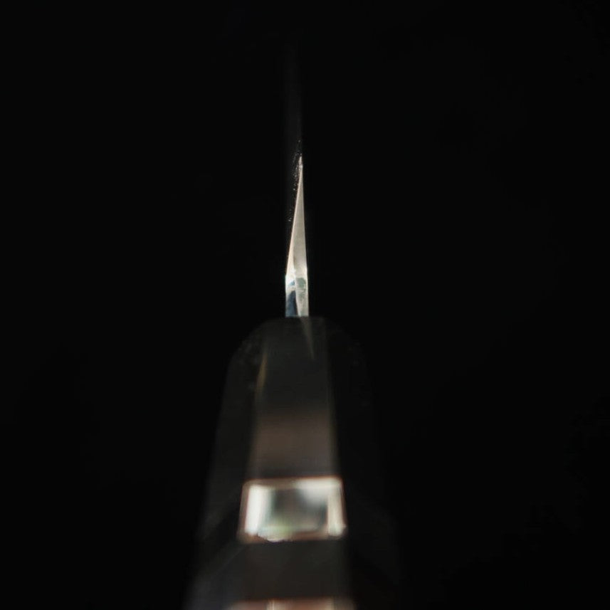 O ginsanko possui três características principais: afiação, resistência à ferrugem e corte duradouro. É perfeito para chefs de sushi que usam muito vinagre e para quem trabalha em ambientes movimentados.Este é um material de aço muito valioso para os chefs japoneses.59-62HRCPossui desempenho de corte comparável ao dos aços carbono, sem perder para eles, e ainda reduz a dificuldade de afiação típica do aço inoxidável e o deslizamento ao cortar alimentos. Naturalmente, a resistência à ferrugem é incomparavelmente maior do que as facas de aço Shirogami ou Aogami. Além disso, o Ginsan pode ser forjado, o que faz com que o fio dure mais em comparação com outros aços inoxidáveis.